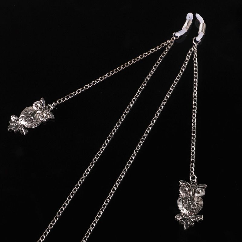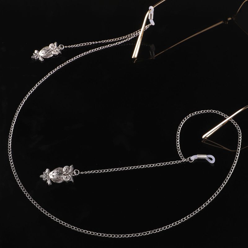 Silver-colored metal non-slip chain, with owl pendant, for glasses and masks GL213