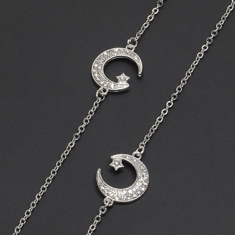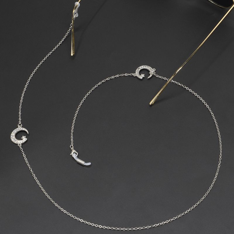 Silver-colored metal non-slip chain with rhinestones, star and moon, for glasses and masks GL227