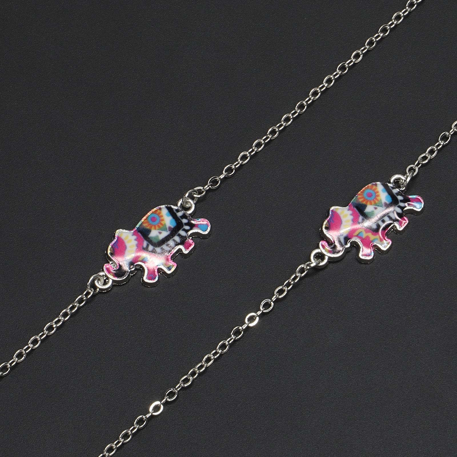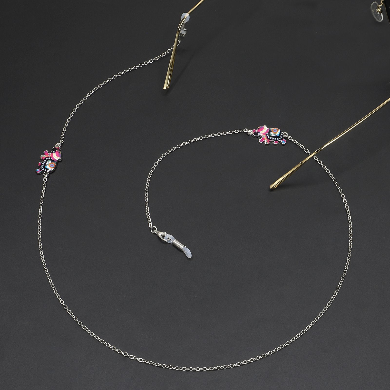 Silver-colored metal non-slip chain, with colorful elephant, for glasses and masks GL229