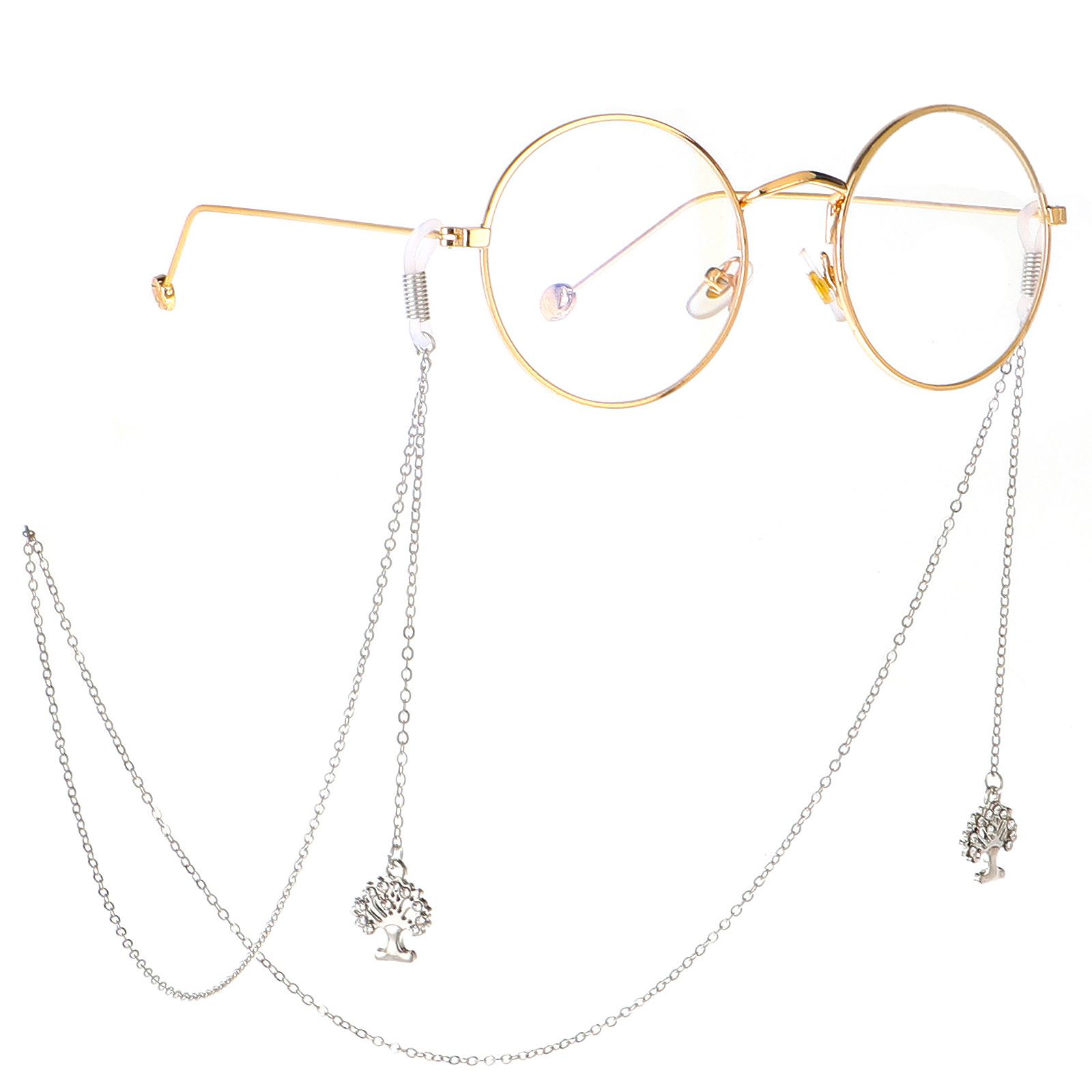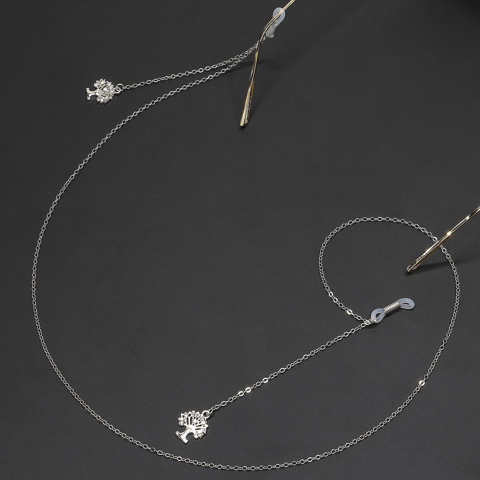Silver-colored metal non-slip chain, with tree of life and rhinestone, for glasses and masks GL233