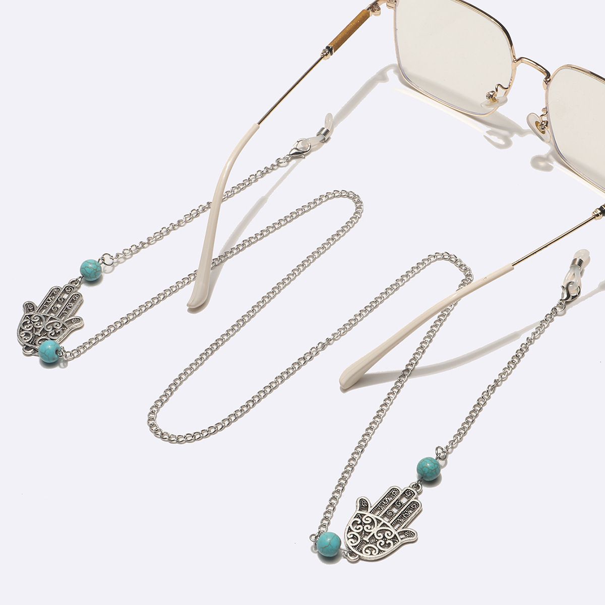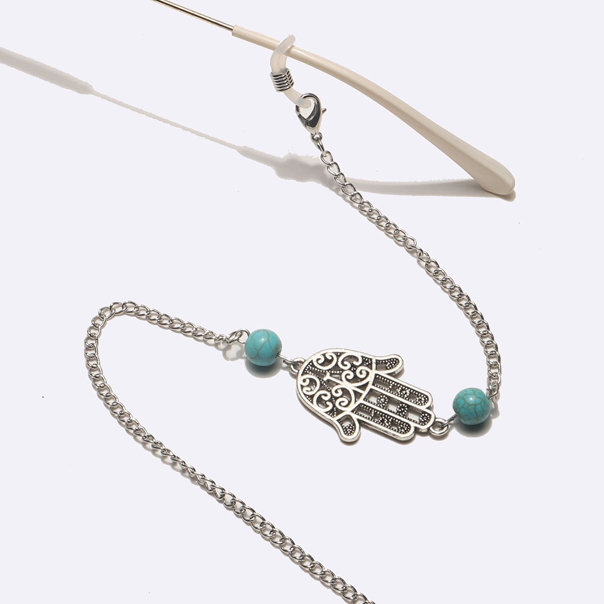 Silver-colored metal non-slip chain, with pendant palm and turquoise beads, for glasses and masks GL238-1