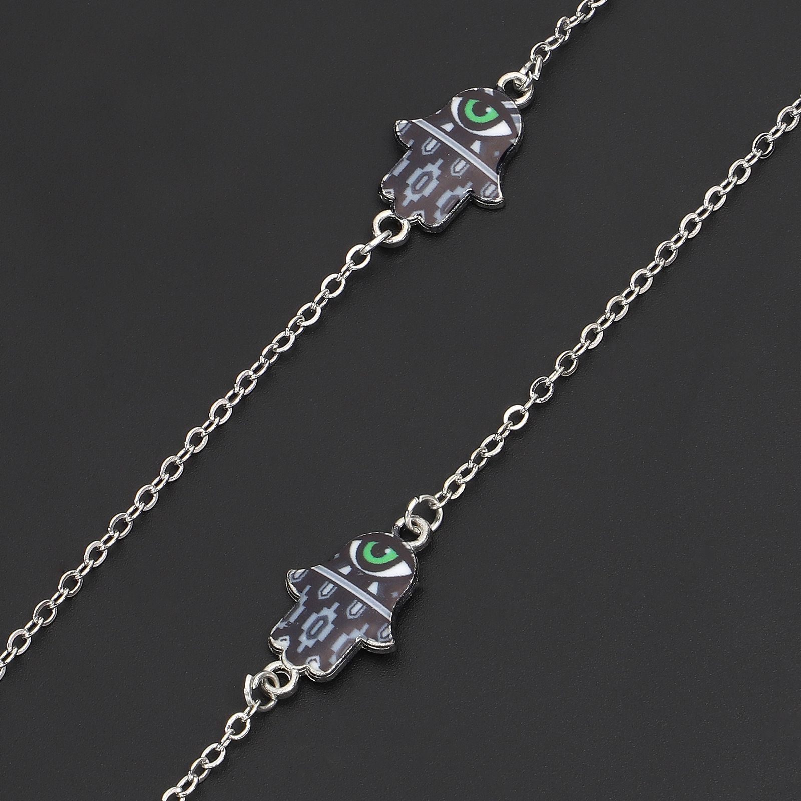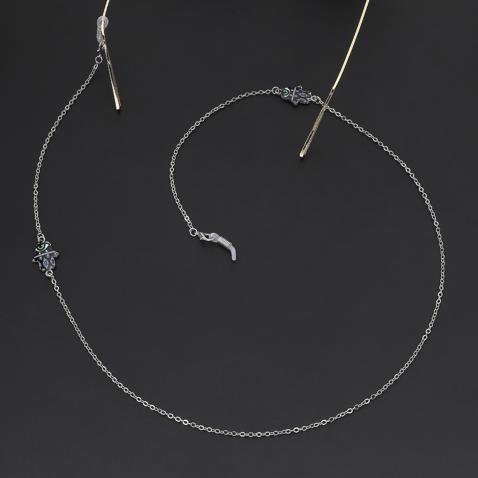 Silver-colored metal non-slip chain, with pendant palm and eye, for glasses and masks GL238