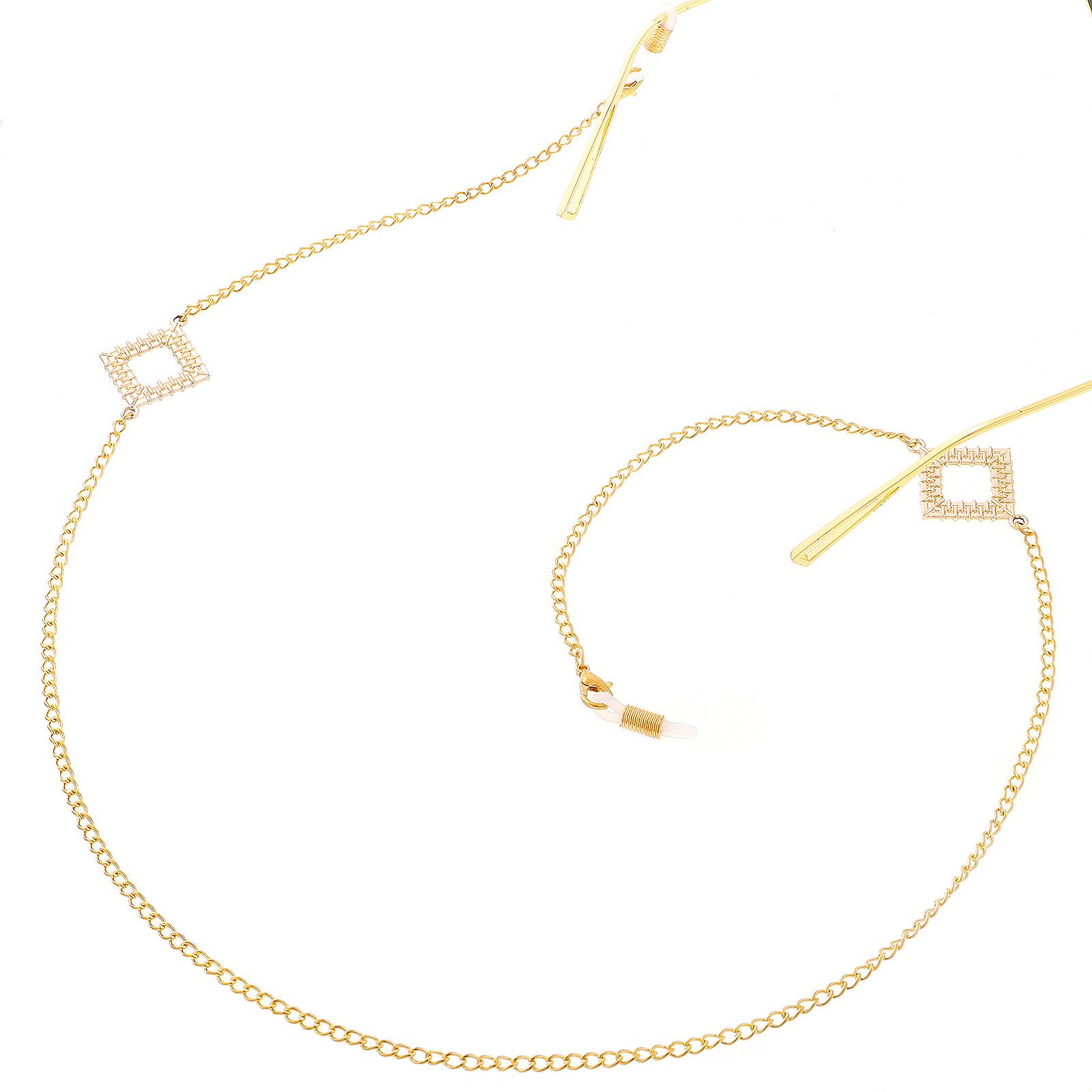 Gold-colored metal non-slip chain, with pendant square, for glasses and masks GL239