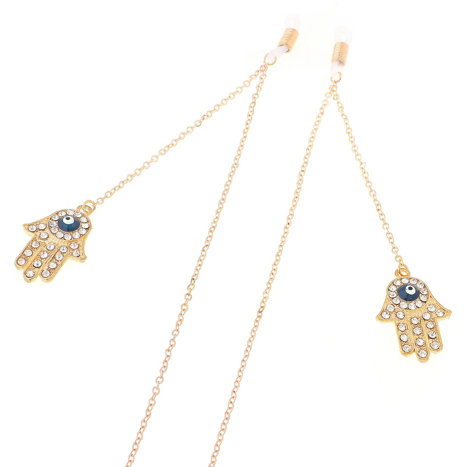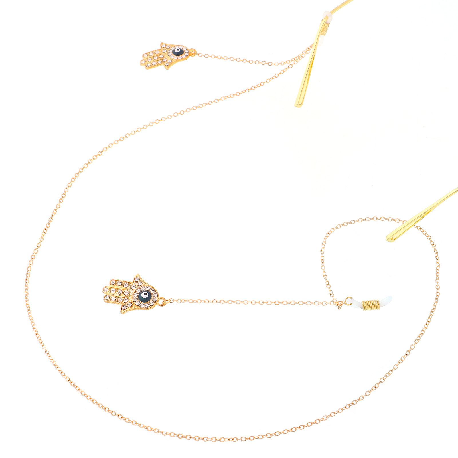 Gold-colored metal non-slip chain, with pendant palm and rhinestone, for glasses and masks GL245