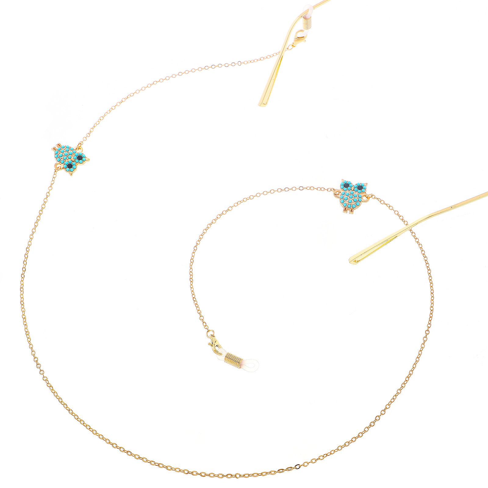 Metal non-slip chain gold, with pendant owl, for glasses and masks GL255