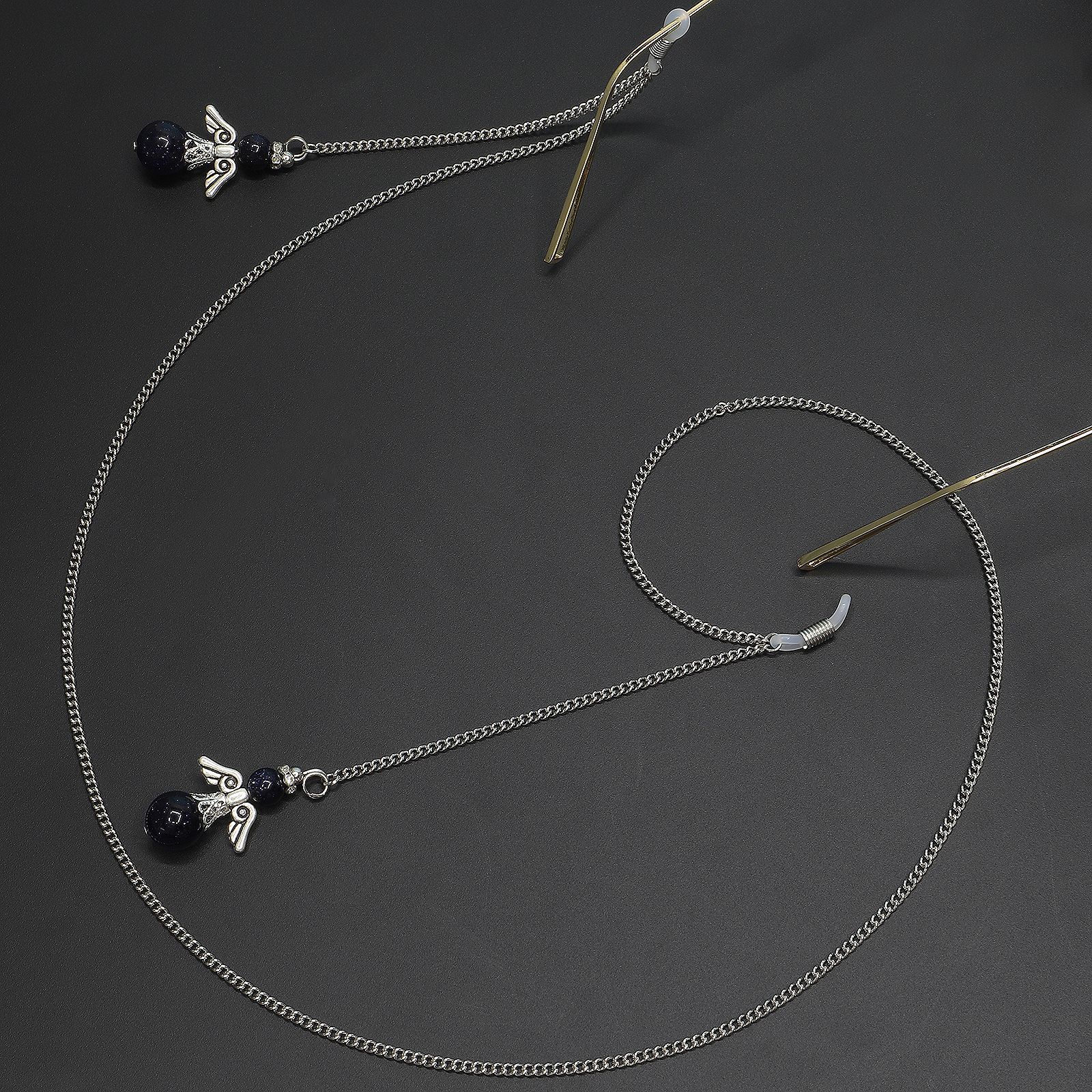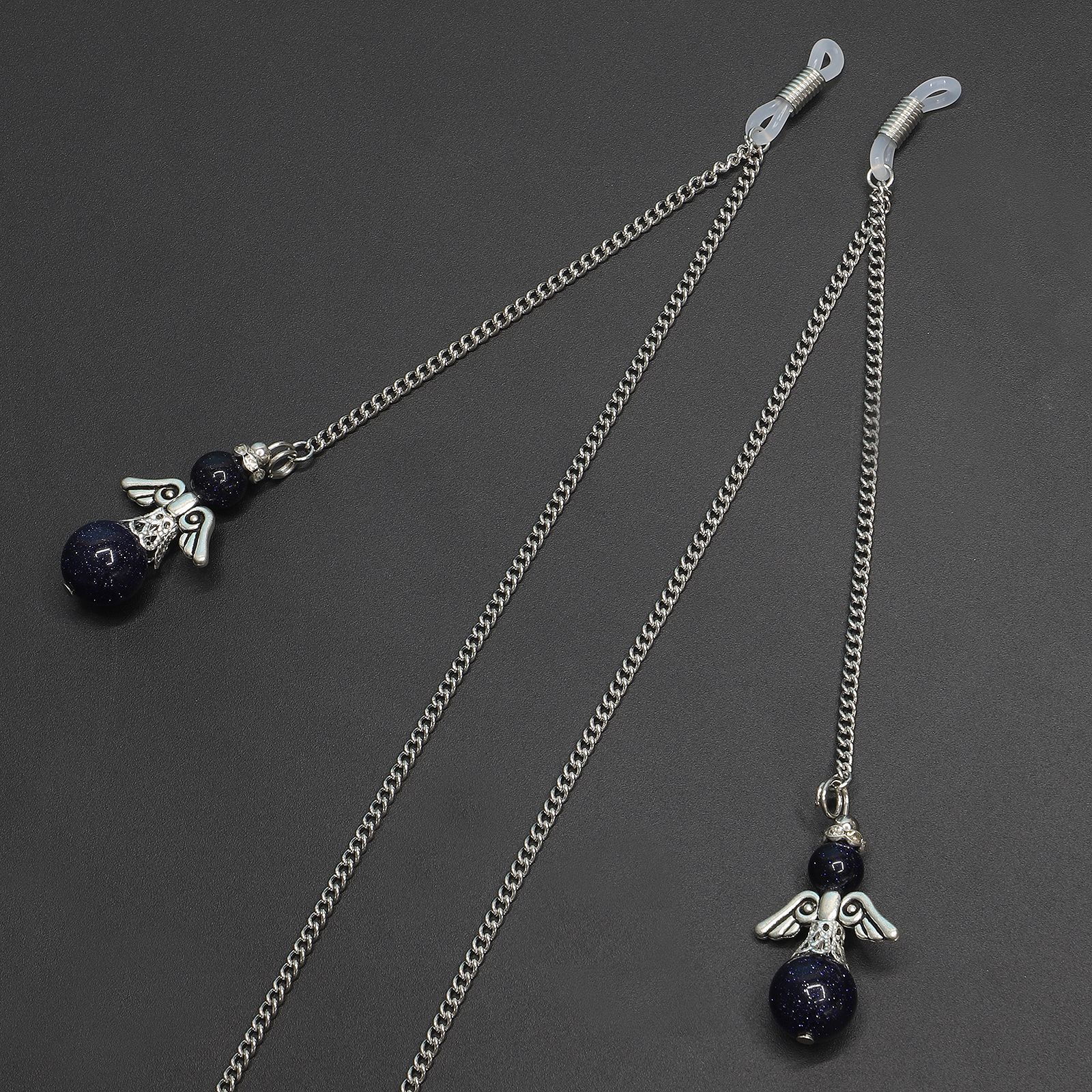 Silver-colored metal non-slip chain, with pendant black natural stone , for glasses and masks GL272