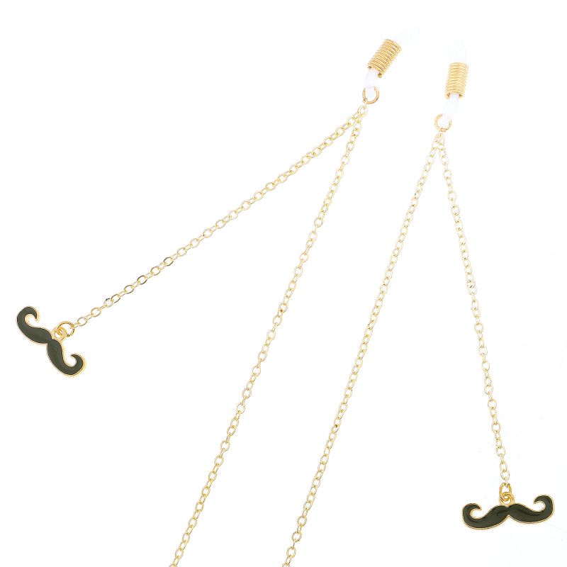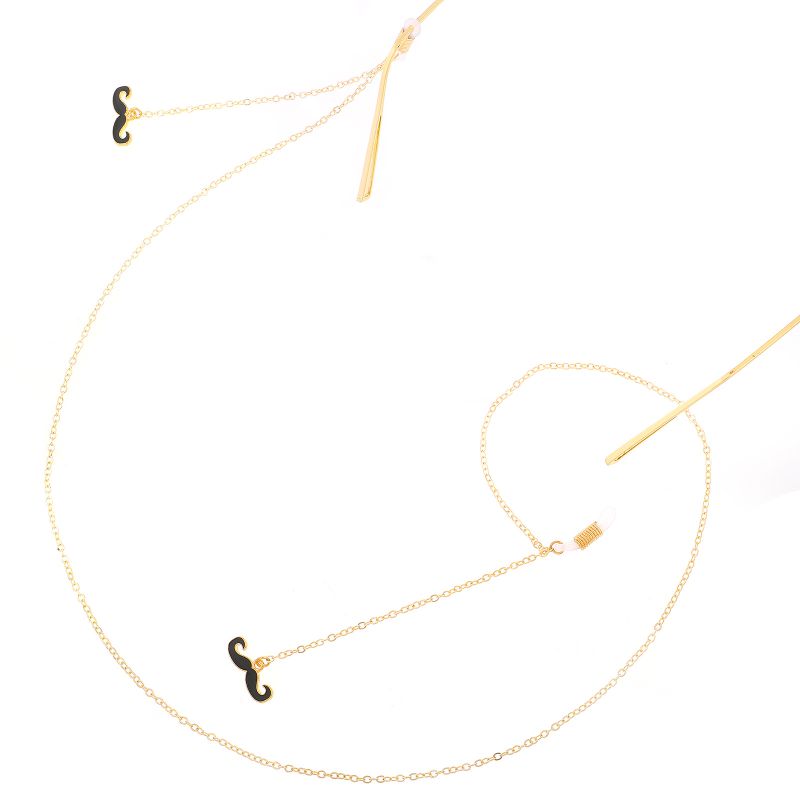 Gold-colored metal non-slip chain, with a mustache pendant, for glasses and masks GL280