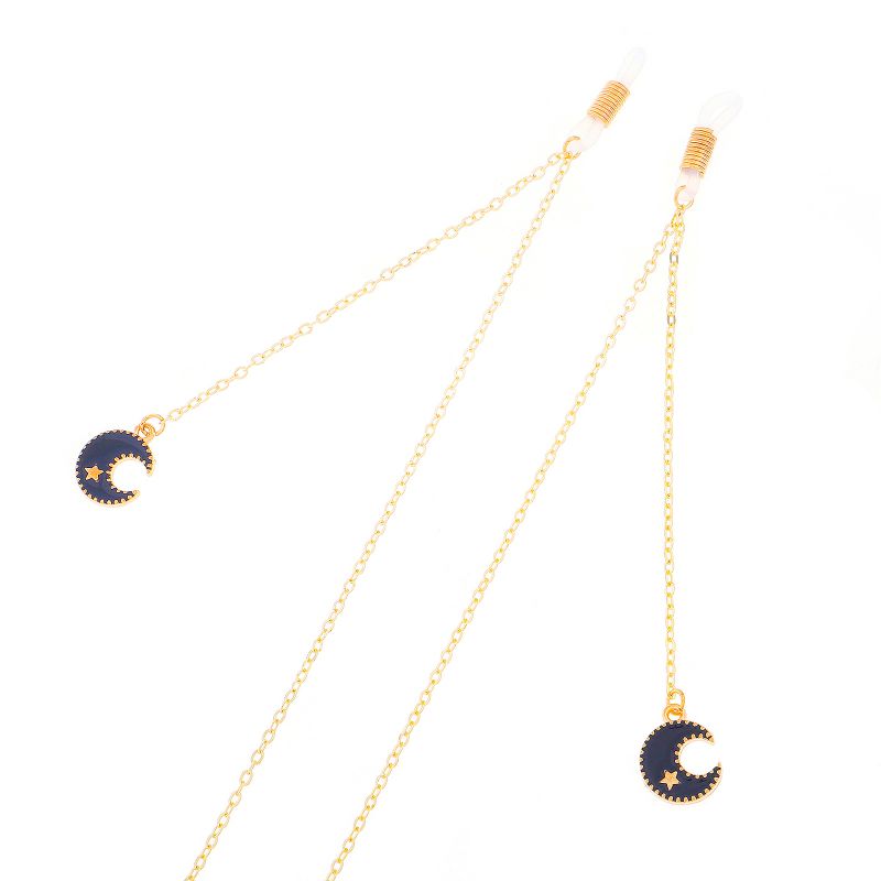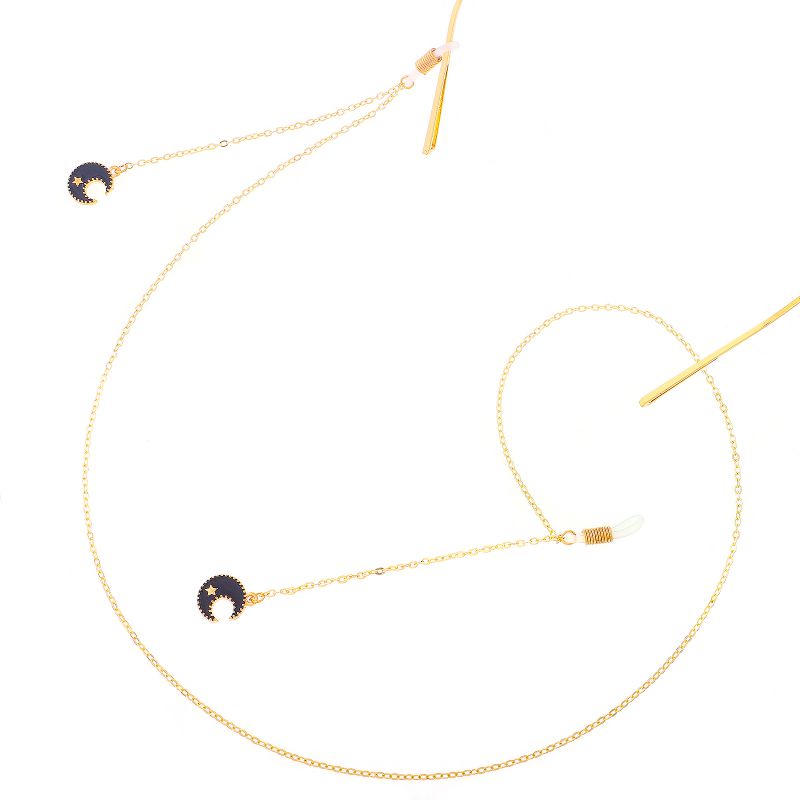Gold-colored metal non-slip chain, with black moon and star pendant, for glasses and masks GL282