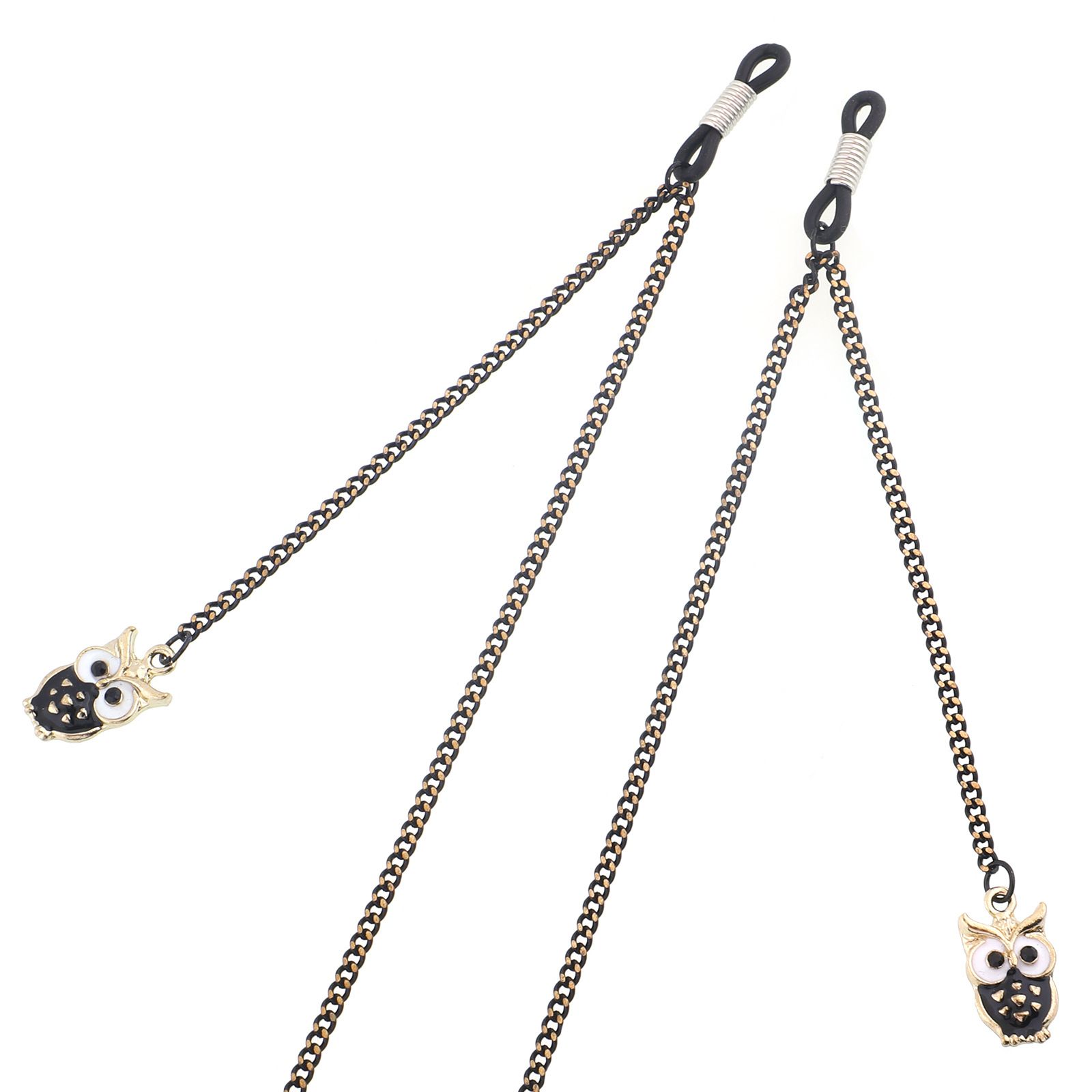 Black-colored metal non-slip chain, with owl, for glasses and masks GL290