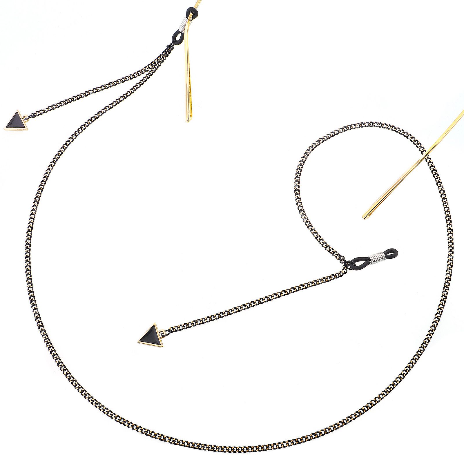 Black-colored metal non-slip chain, with triangle, for glasses and masks GL292
