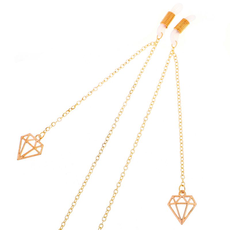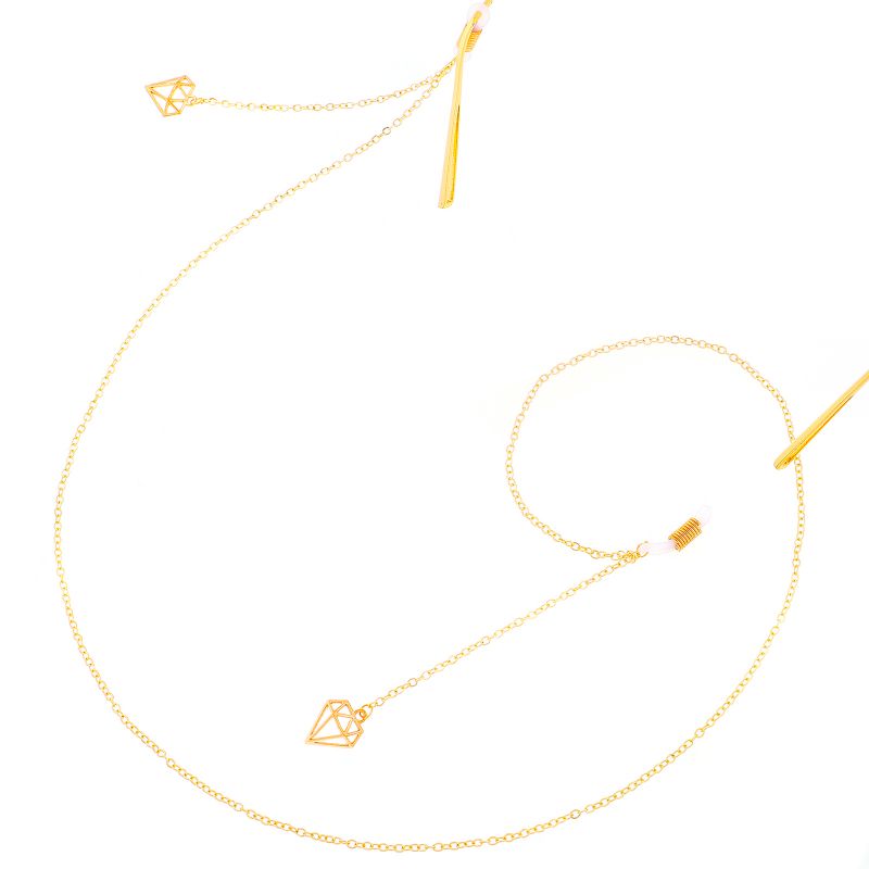 Gold-colored metal non-slip chain, with diamond-shaped pendant, for glasses and masks GL300
