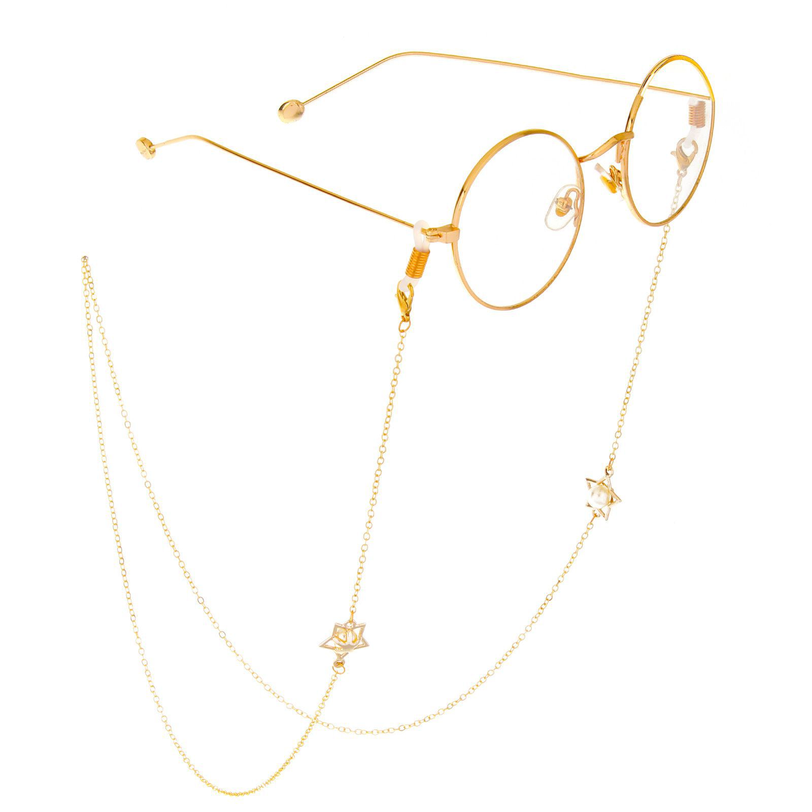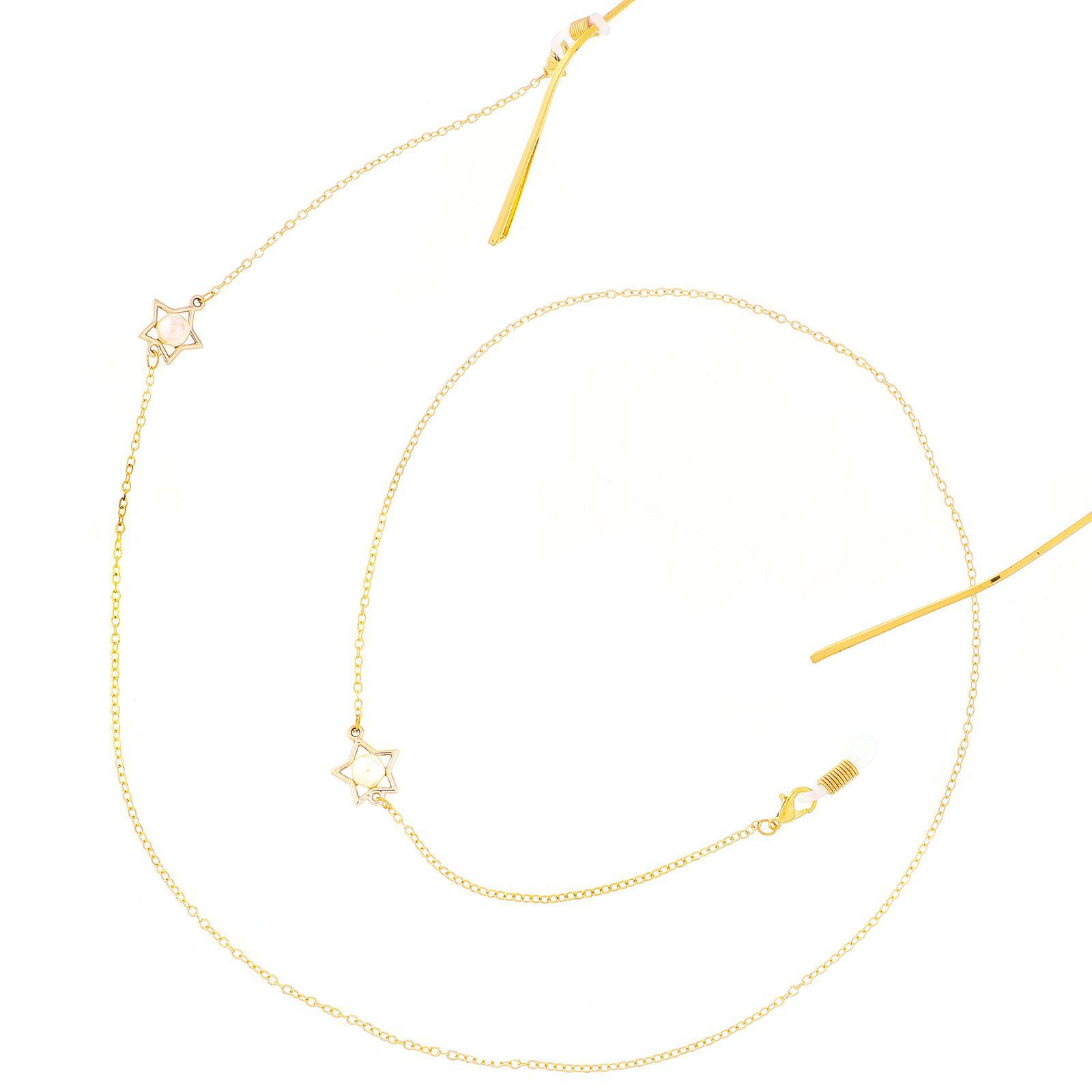 Gold-colored metal non-slip chain, with five-star and pearl, for glasses and masks GL305