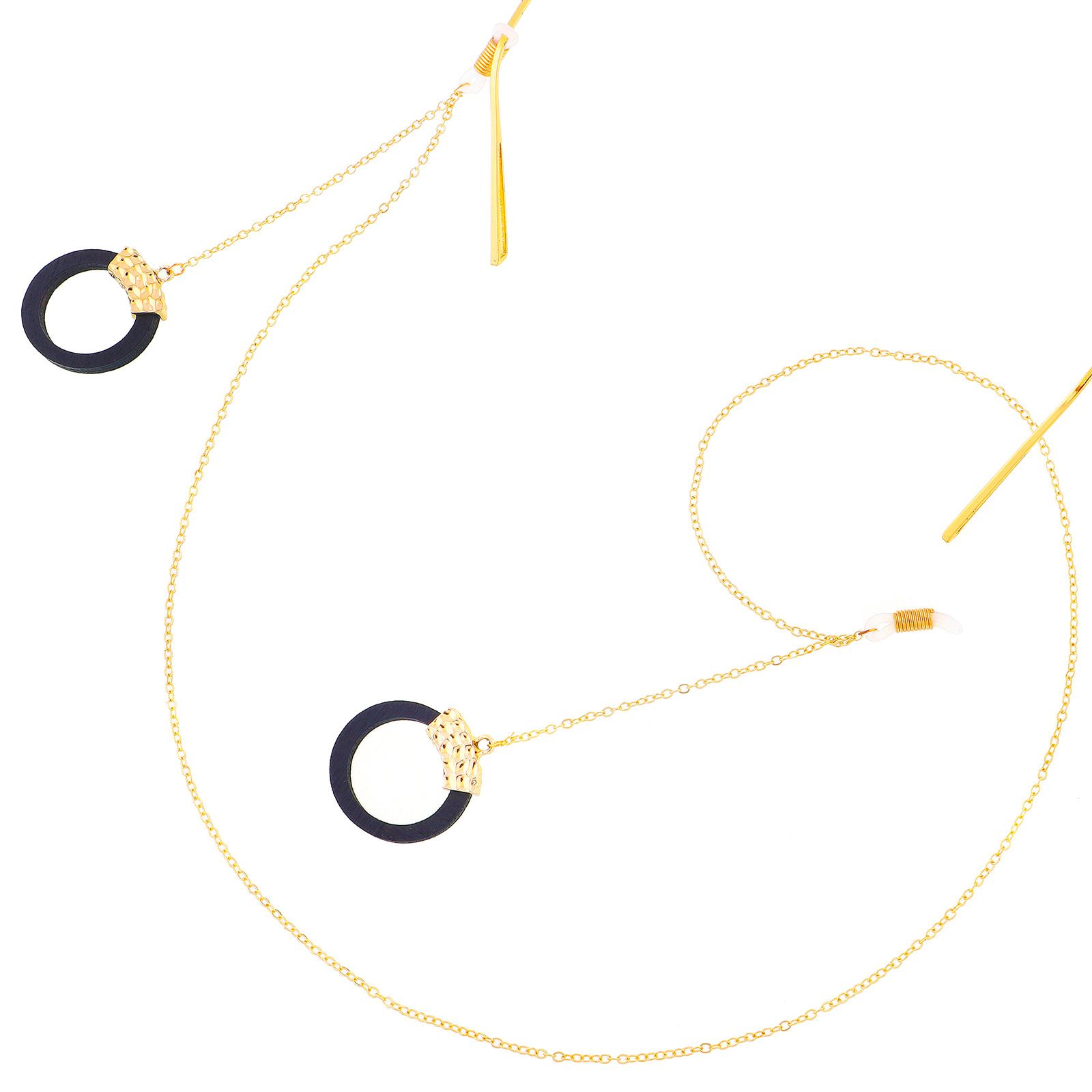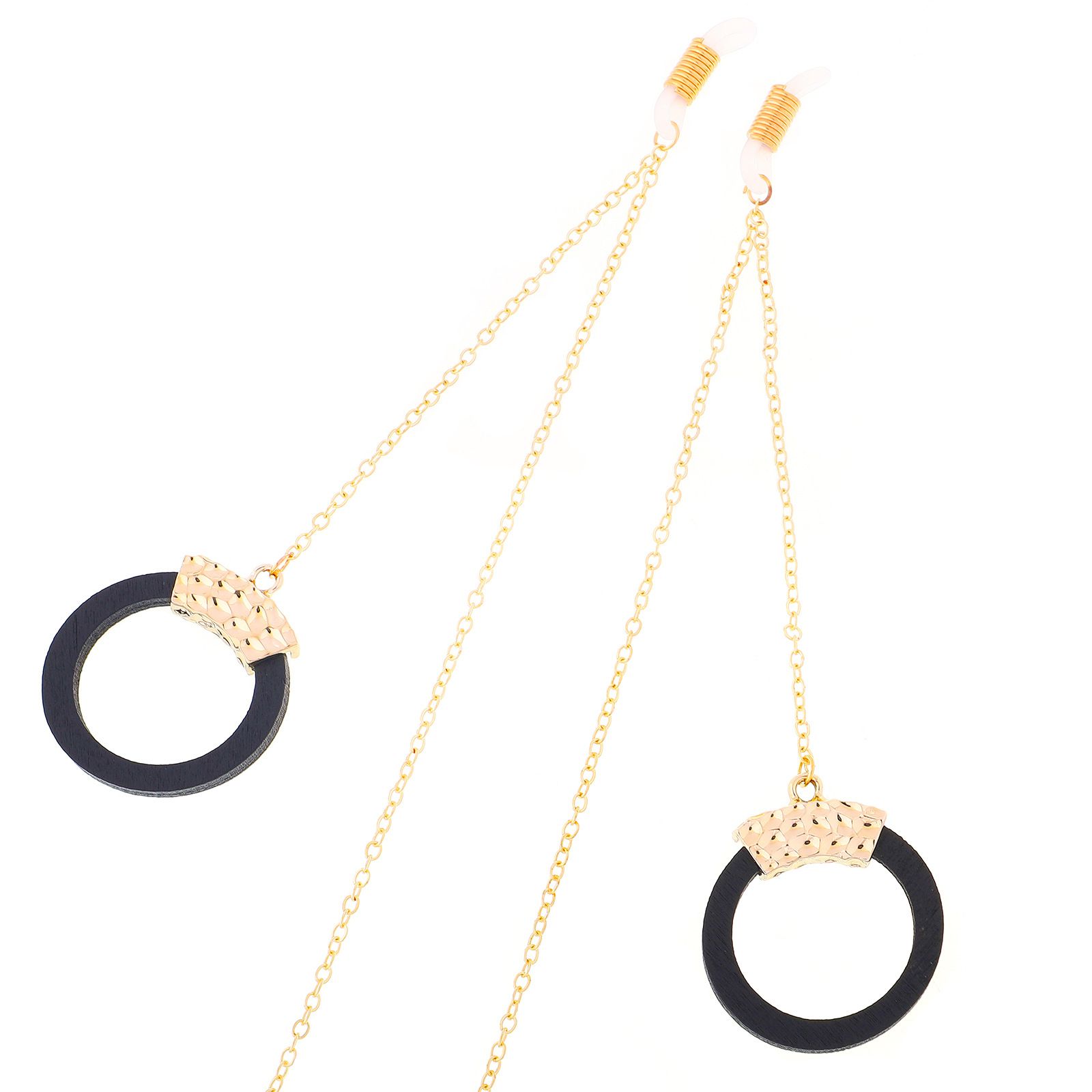 Gold-colored metal non-slip chain, with wood black round pendant, for glasses and masks GL308
