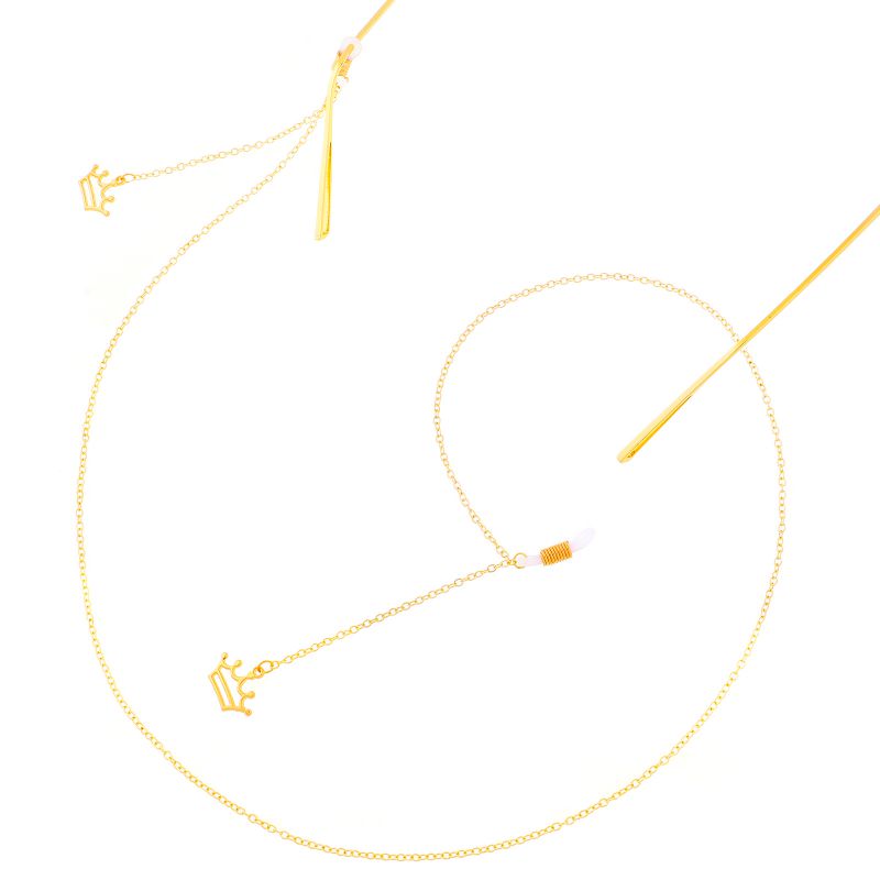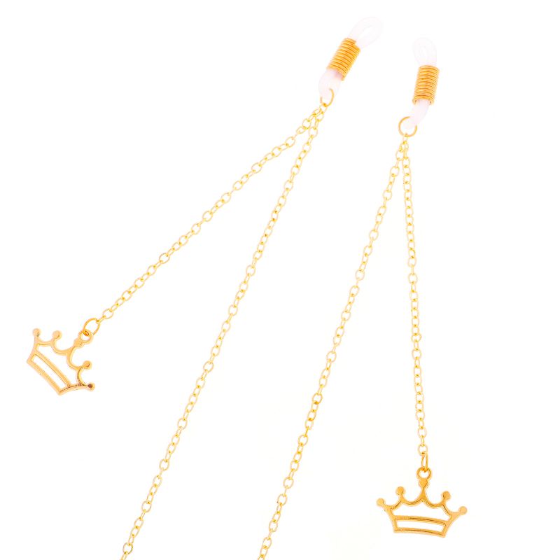 Gold-colored metal non-slip chain, with a princess crown pendant, for glasses and masks GL312