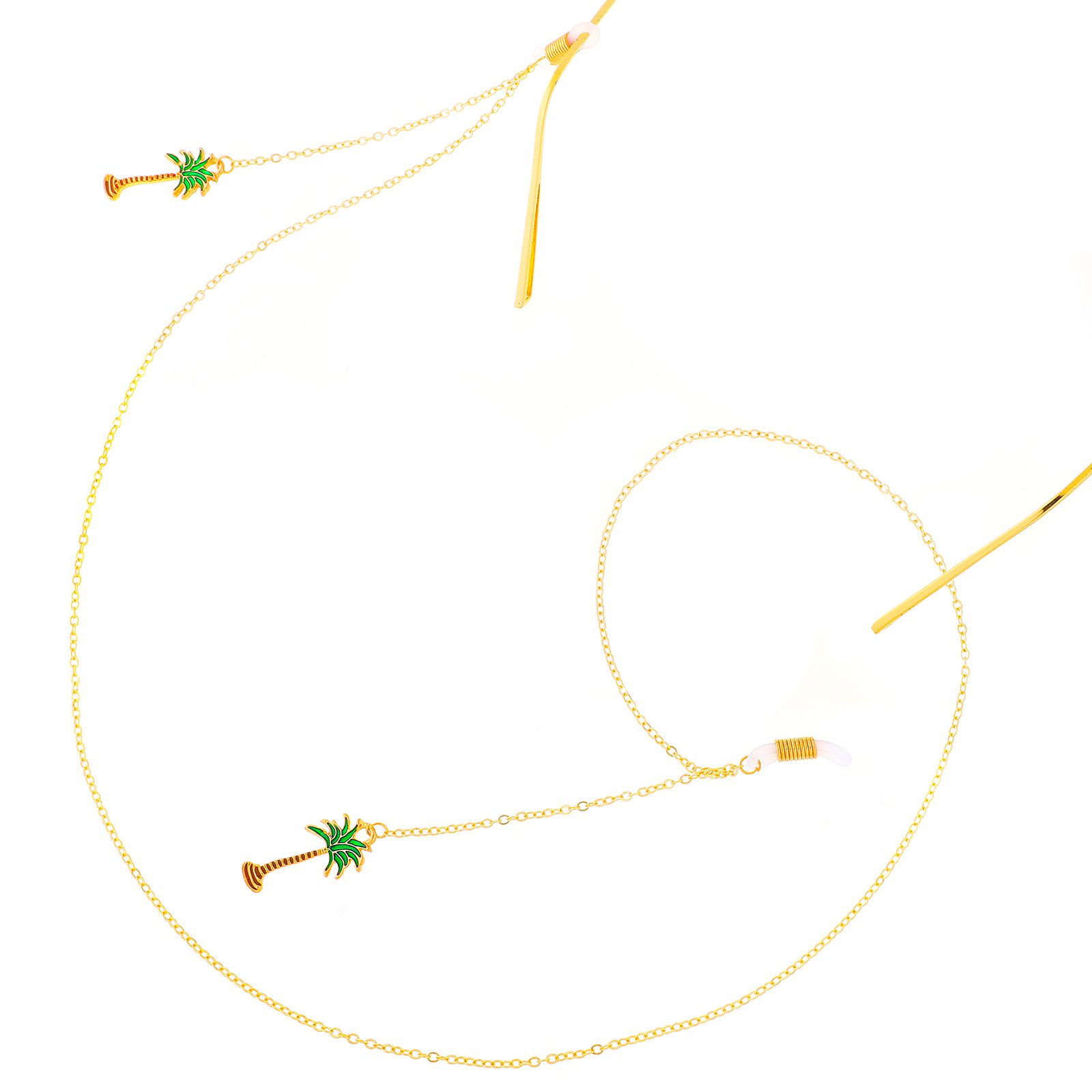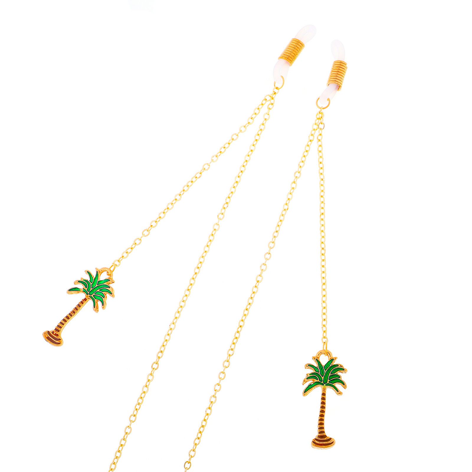 Gold-colored metal non-slip chain, with pendant coconut tree, for glasses and masks GL315