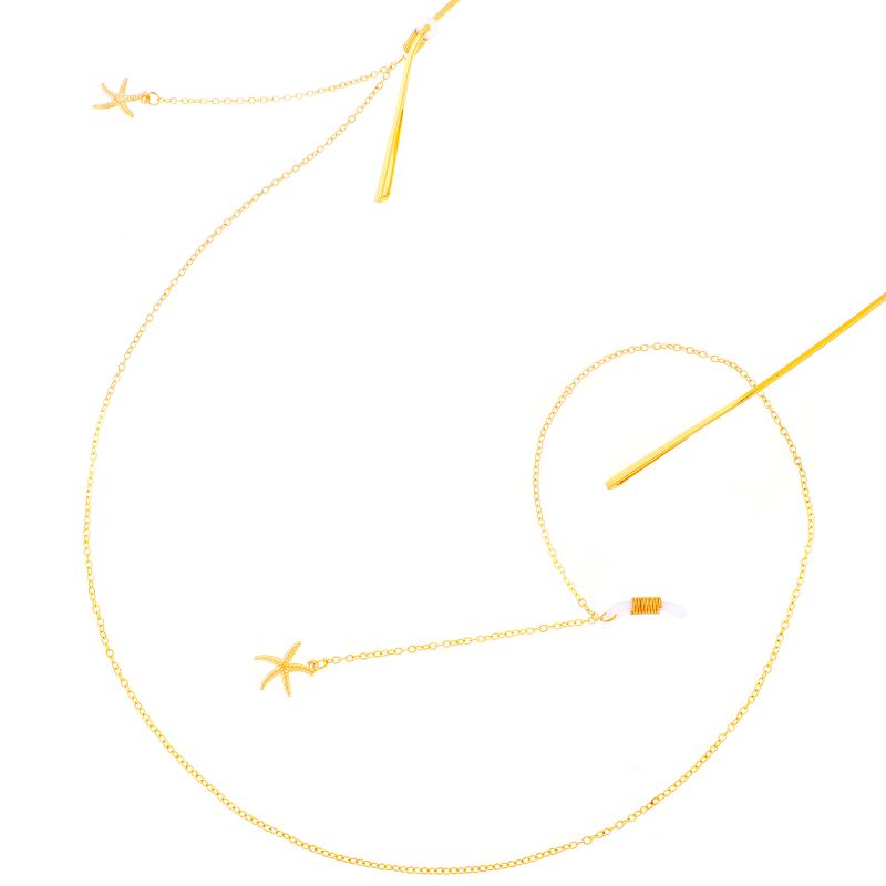 Gold-colored metal non-slip chain, with starfish pendant, for glasses and masks GL316