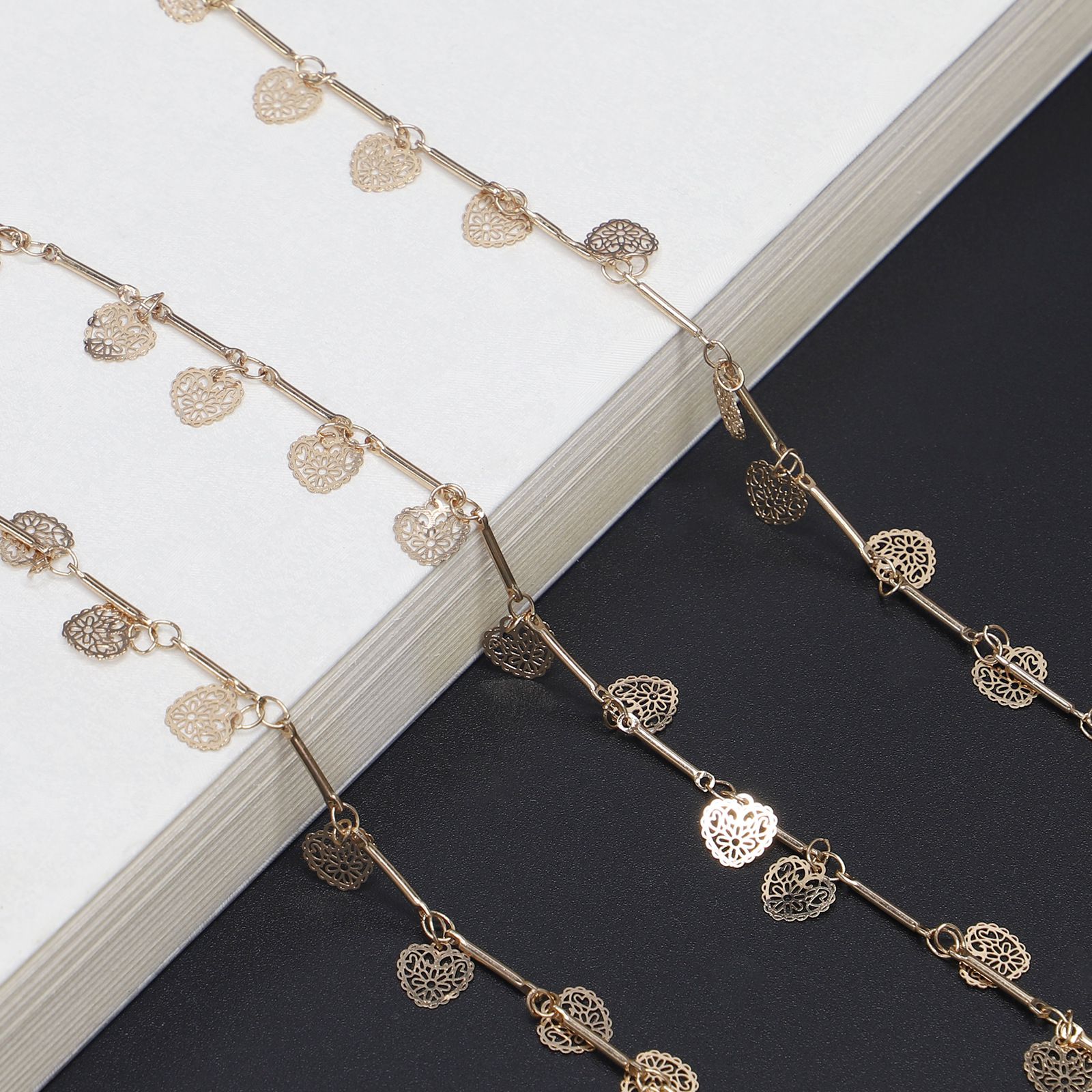 Metal non-slip chain, gold hollow with heart, for glasses and masks GL333