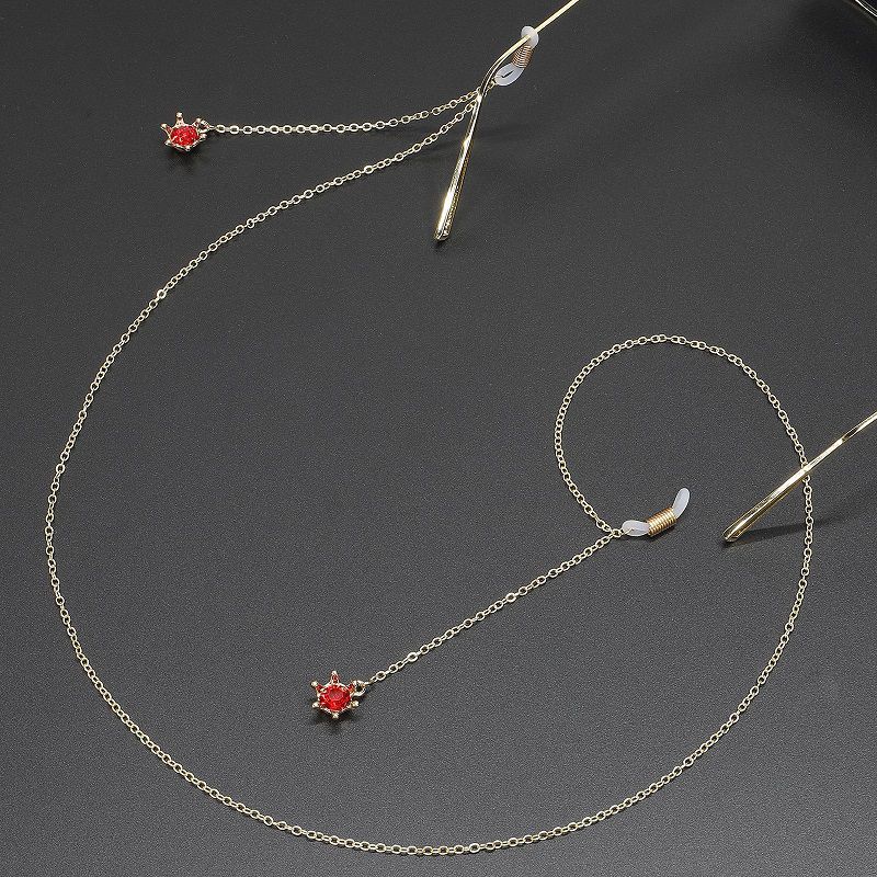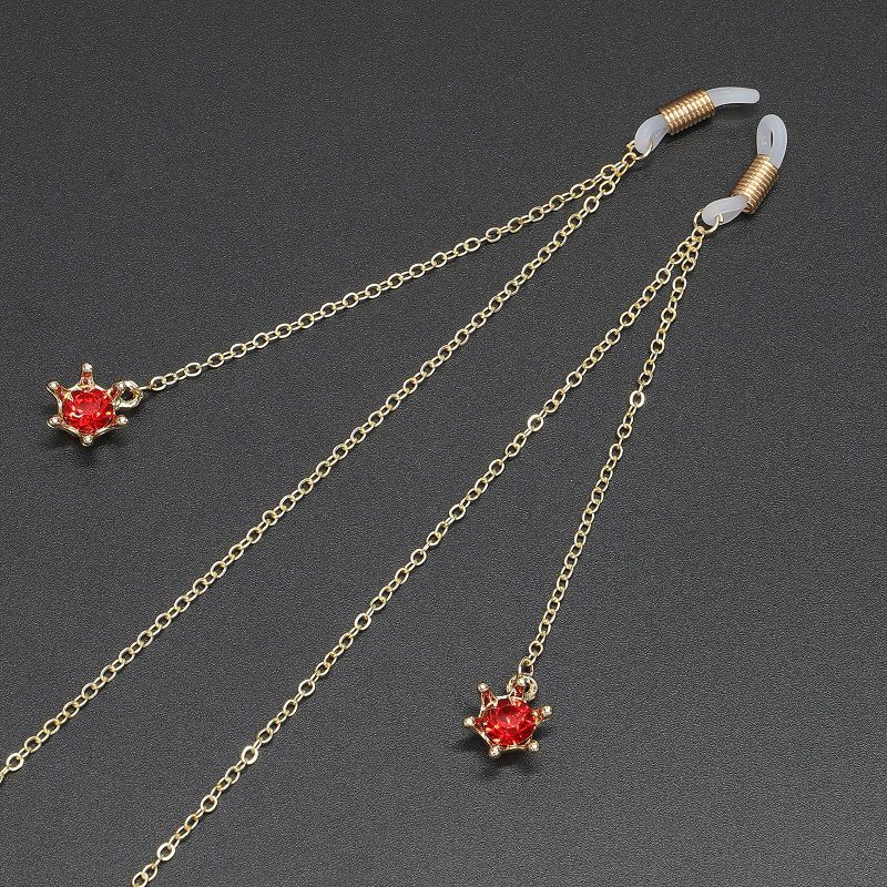 Gold-colored metal non-slip chain, with crown and rhinestones, for glasses and masks GL349