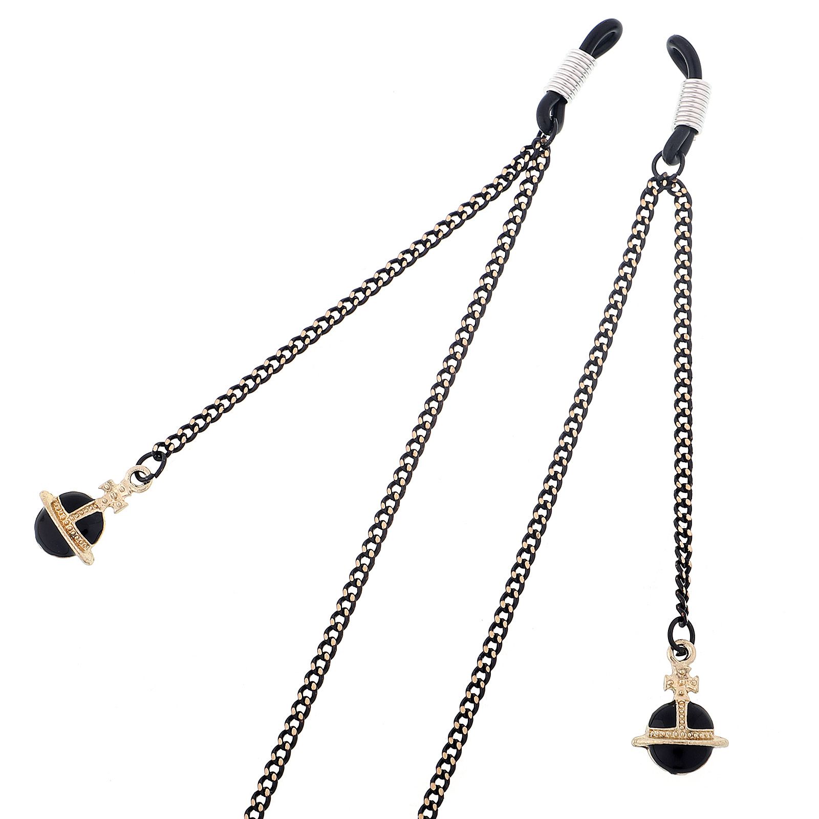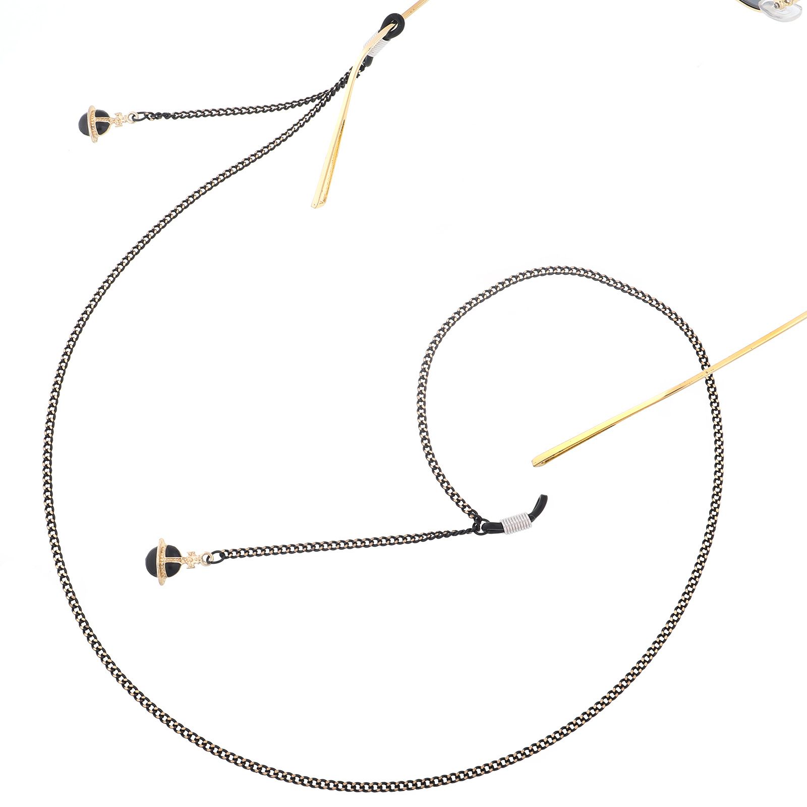 Black-colored metal non-slip chain, with pendant satellite, for glasses and masks GL364