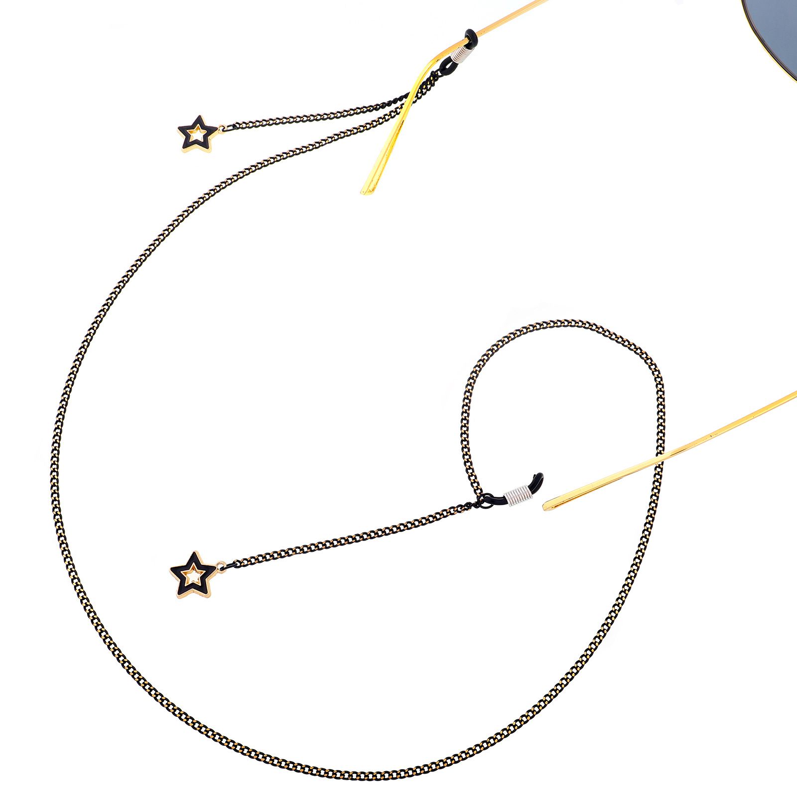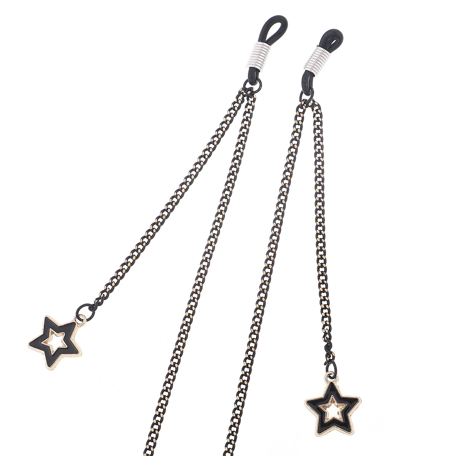 Black-colored metal non-slip chain, with pendant star, for glasses and masks GL365