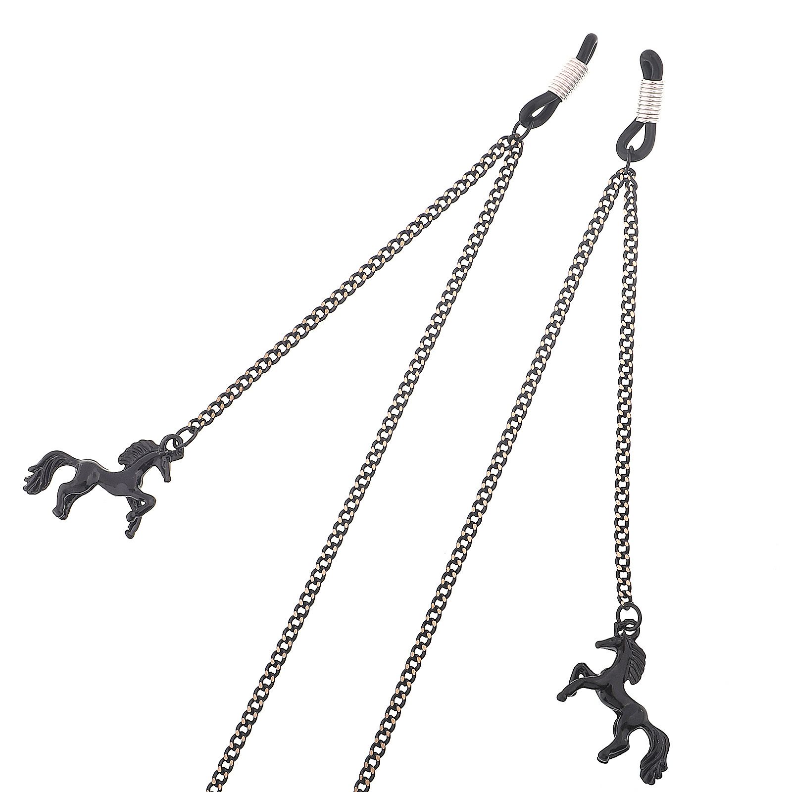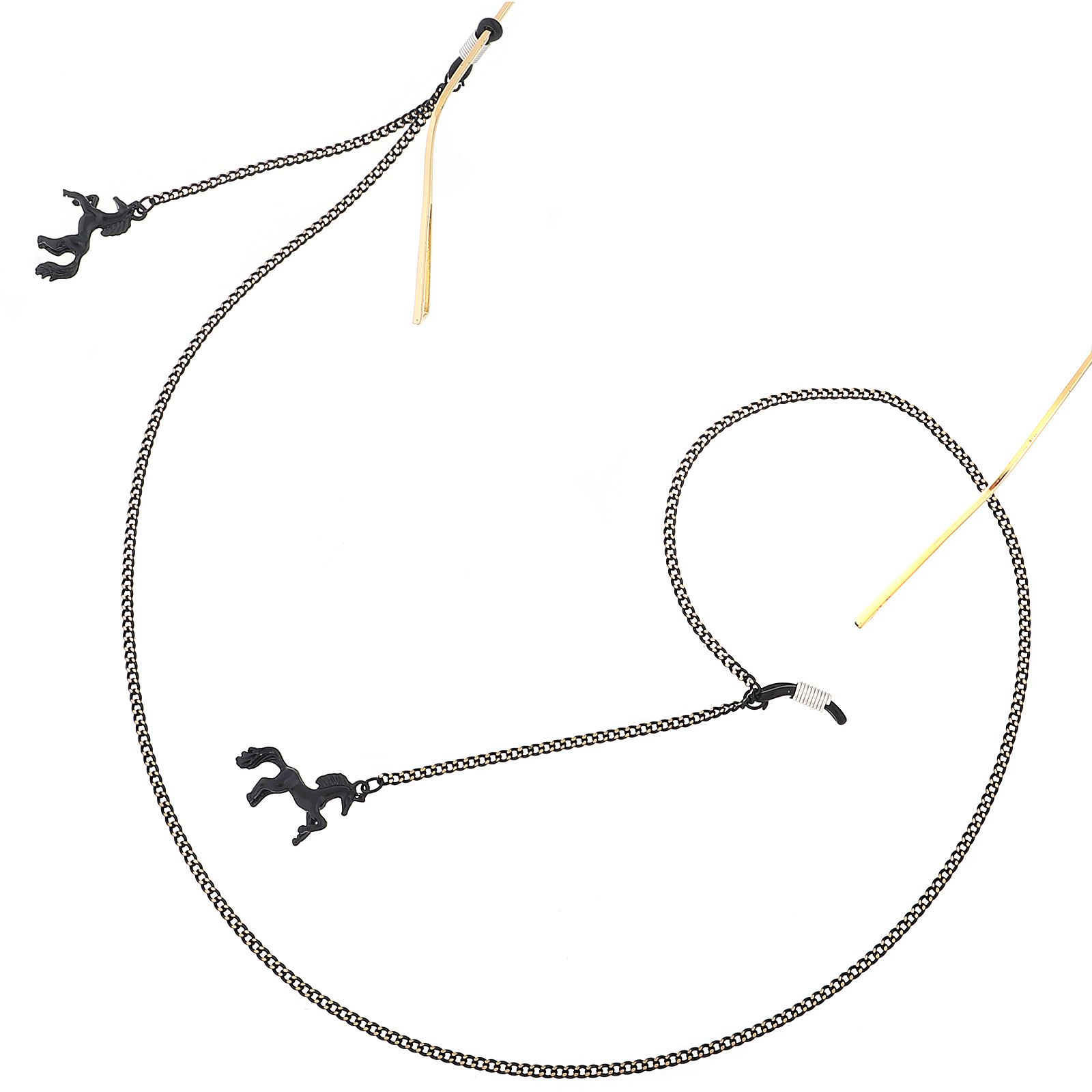 Black-colored metal non-slip chain, with pendant animal horse, for glasses and masks GL367