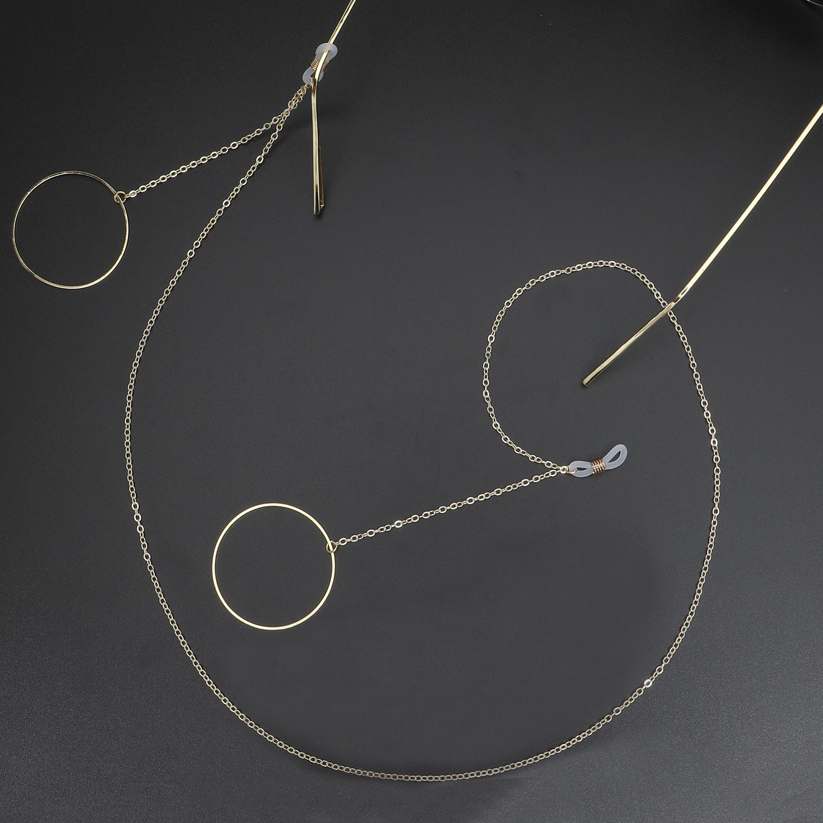 Metal non-slip chain, with pendant geometric round, for glasses and masks GL374