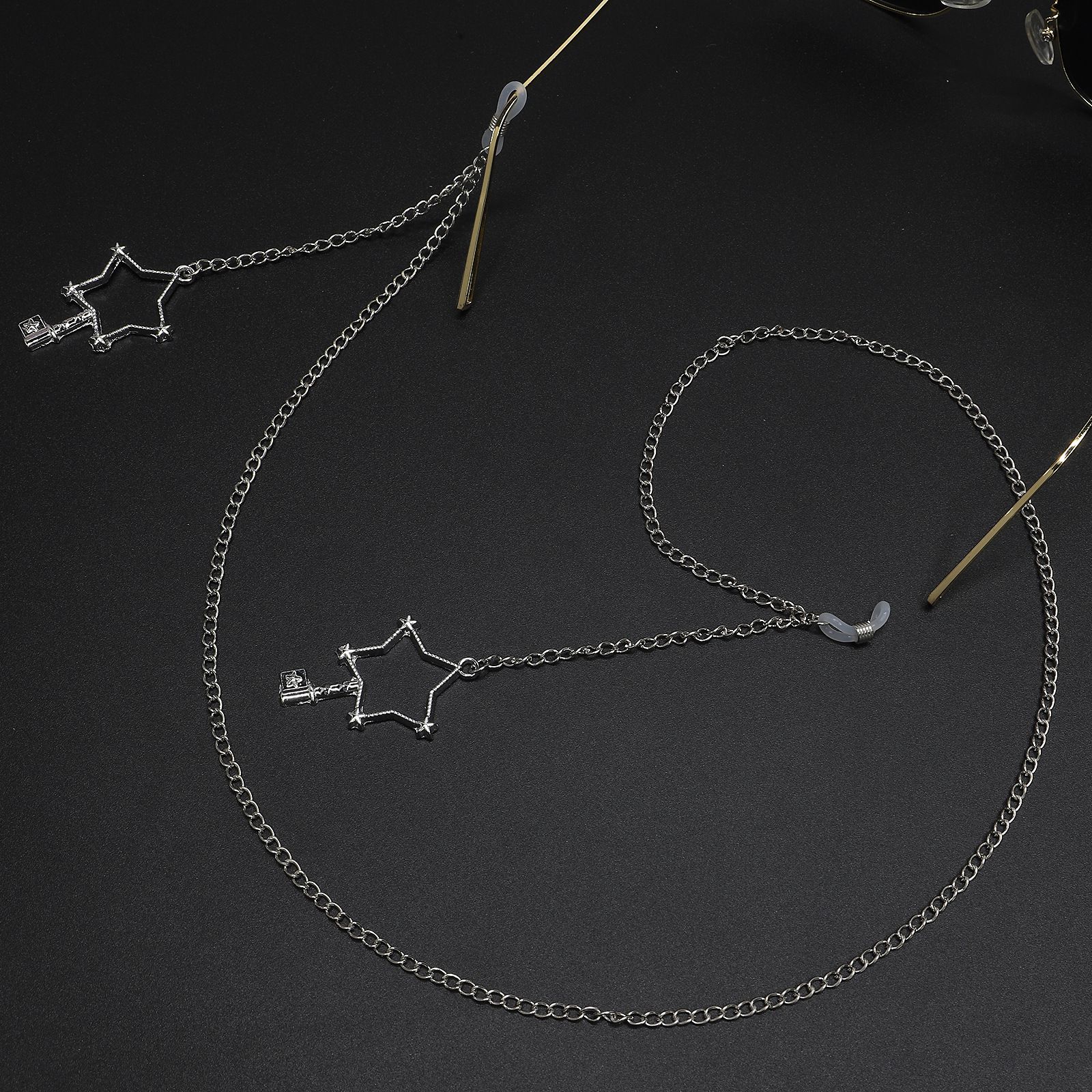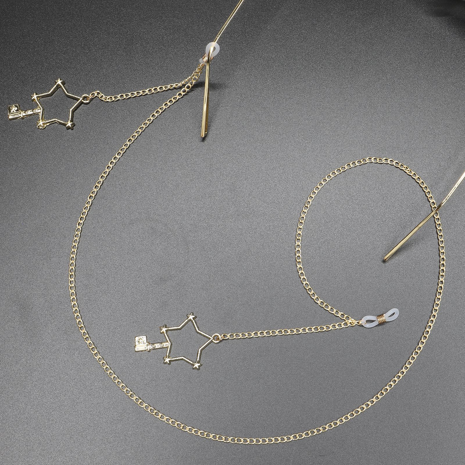 Metal non-slip chain, with pendant style star and key, for glasses and masks GL377