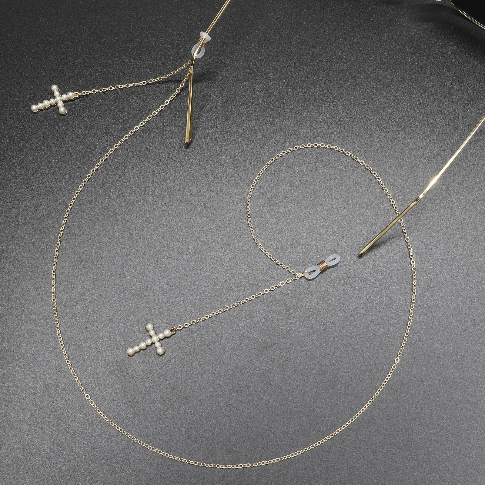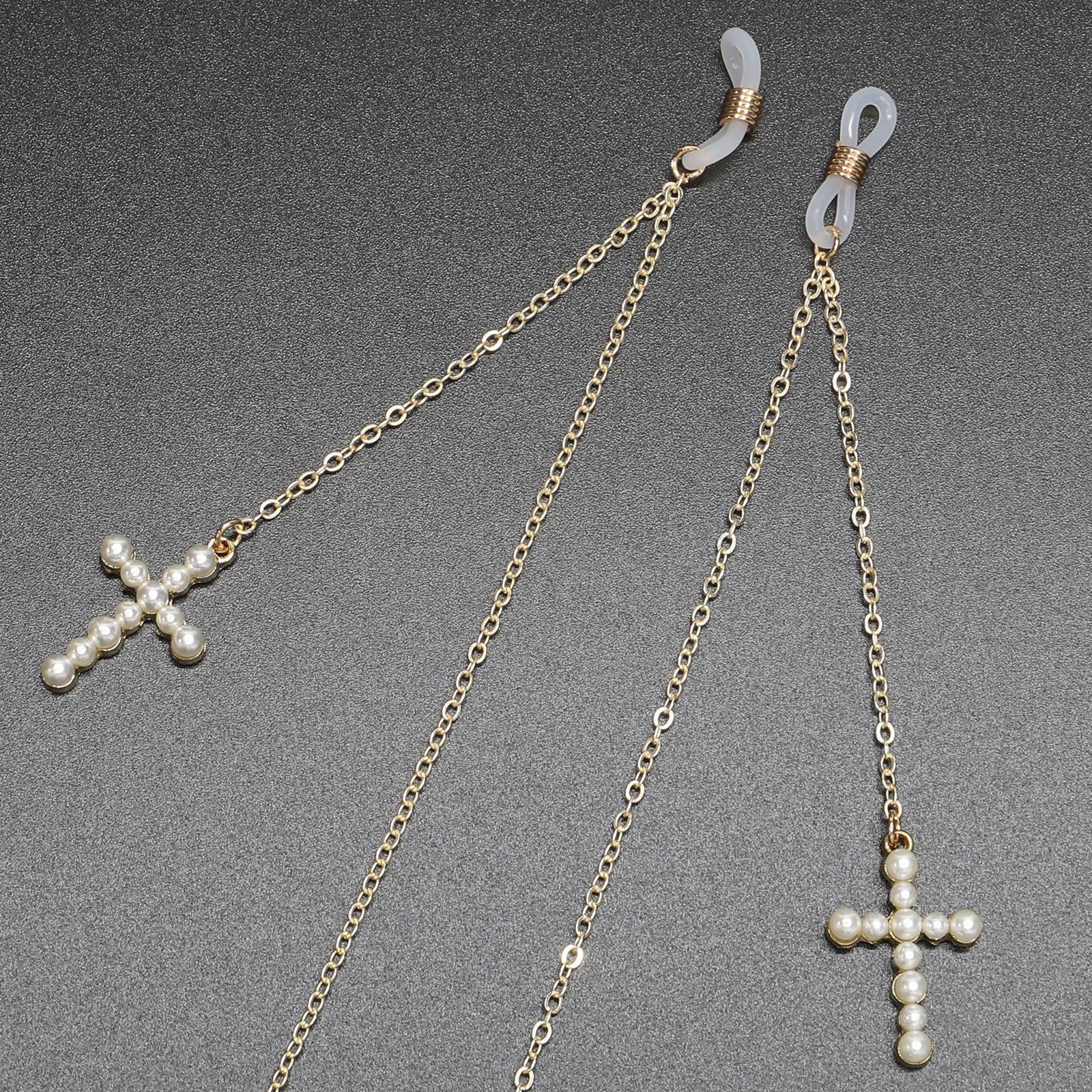 Gold-colored metal non-slip chain, with pearl cross, for glasses and masks GL378
