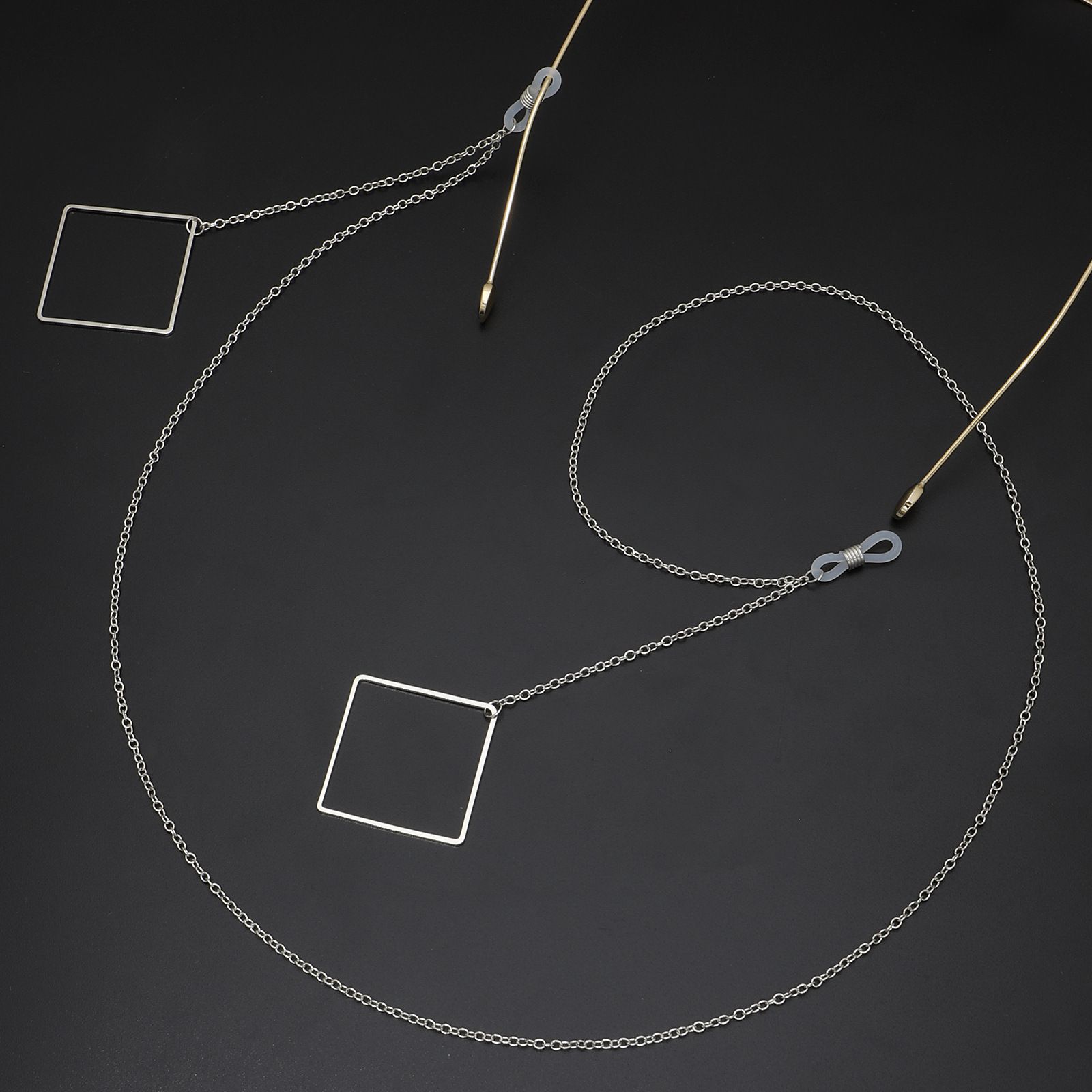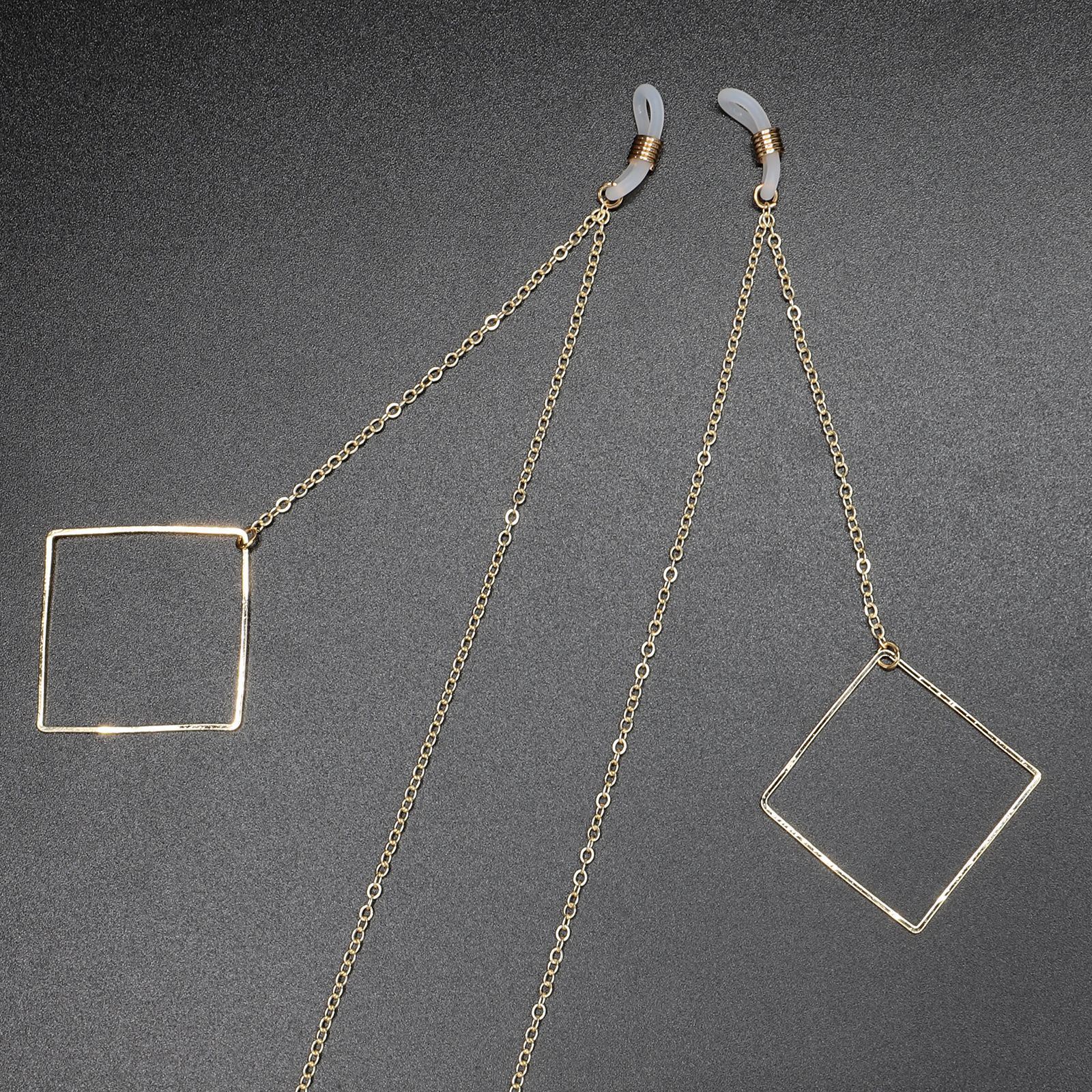 Metal non-slip chain, with pendant geometric square, for glasses and masks GL380