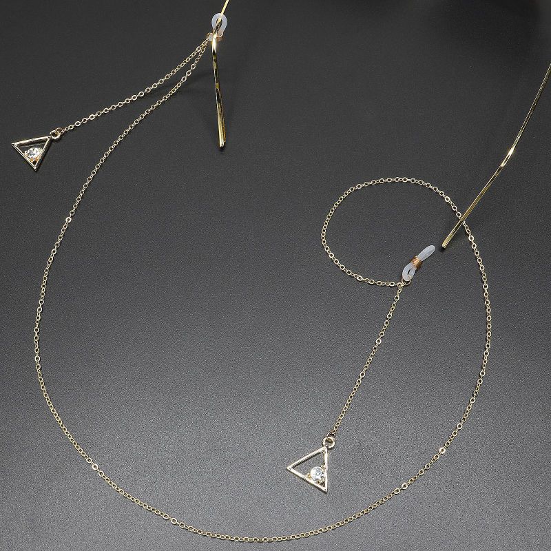 Gold-colored metal non-slip chain, with a triangle pendant with rhinestones, for glasses and masks GL384 GL384 Gold 金 - ¥ 6.30 В наличии