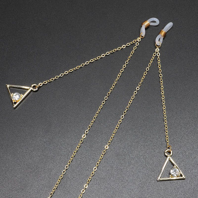Gold-colored metal non-slip chain, with a triangle pendant with rhinestones, for glasses and masks GL384
