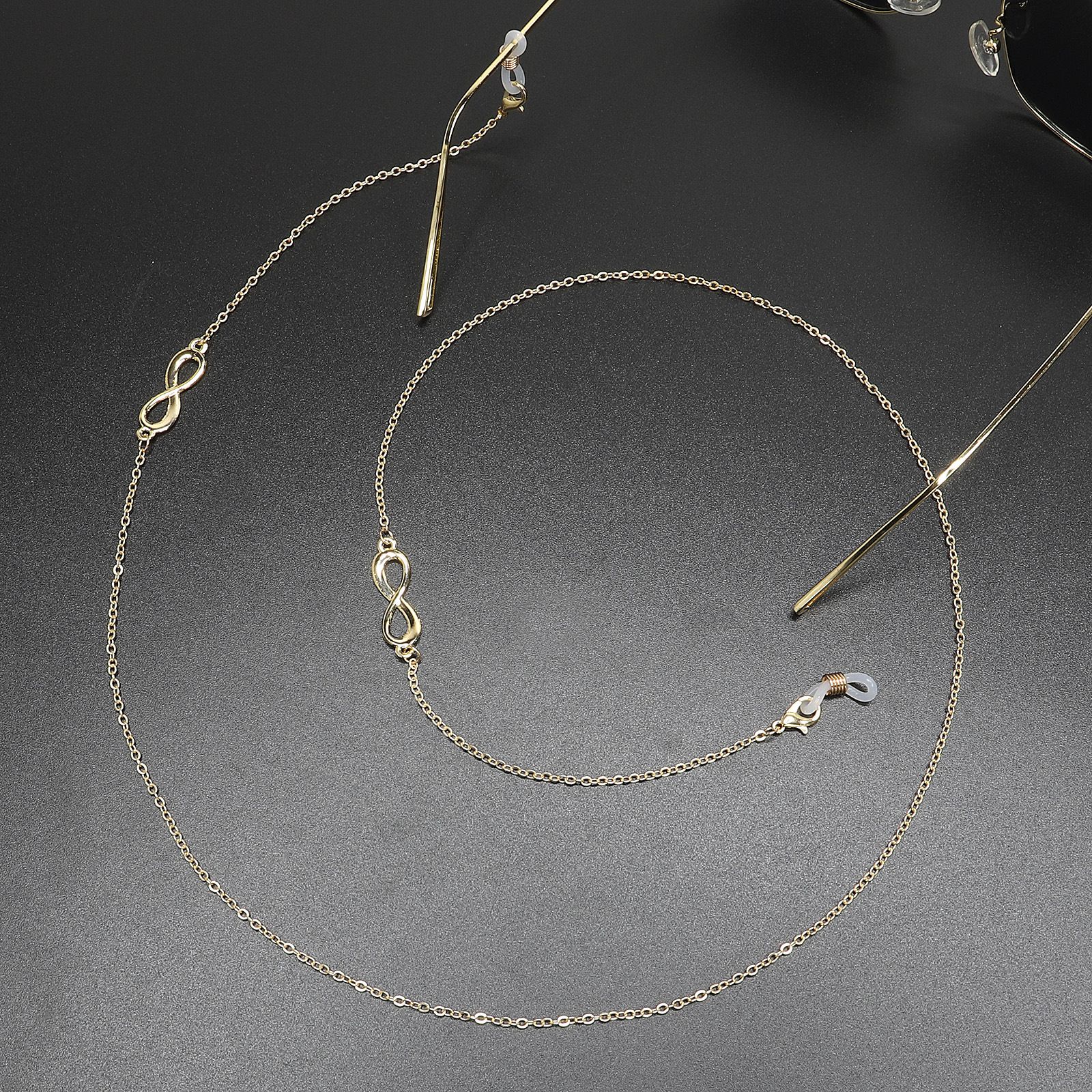 Gold-colored metal non-slip chain, with number 8, for glasses and masks GL393