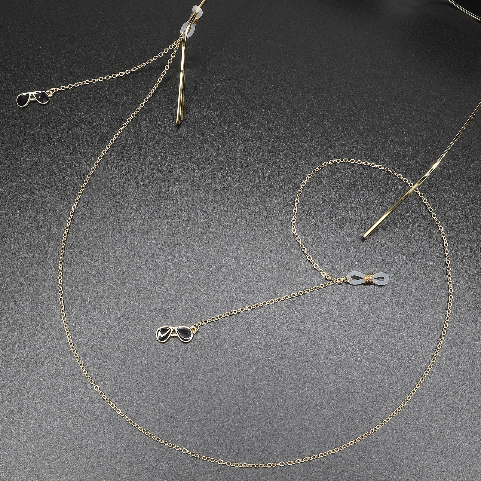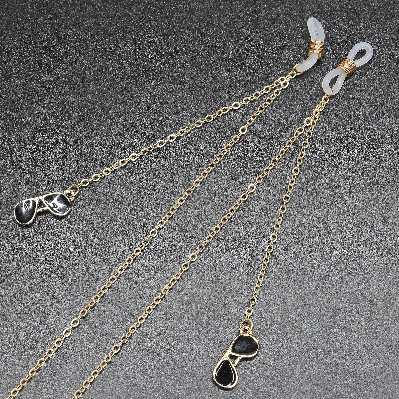 Gold-colored metal non-slip chain, with pendant black sunglasses, for glasses and masks GL399