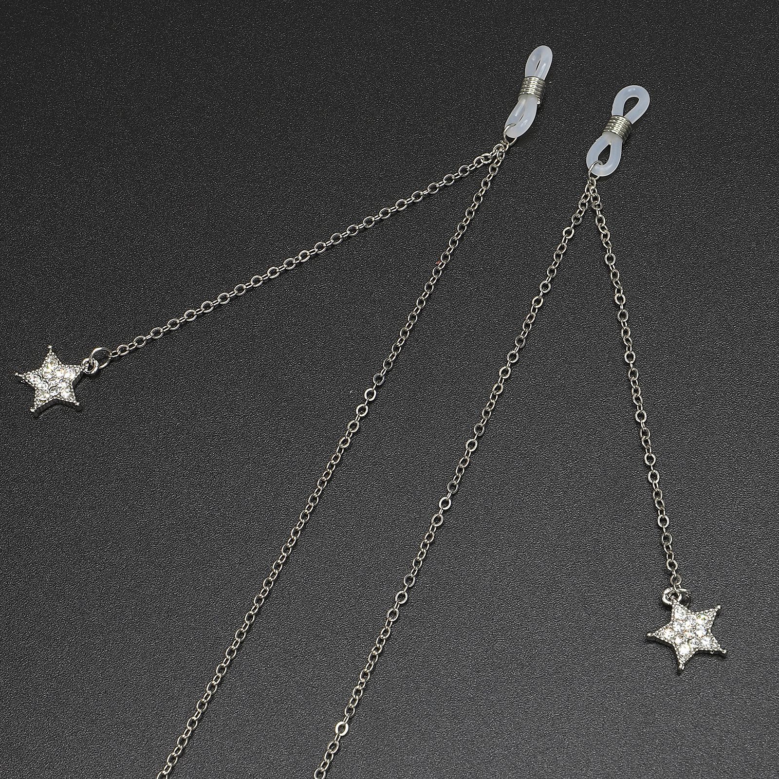 Metal non-slip chain, with pendant star with rhinestone, for glasses and masks GL407