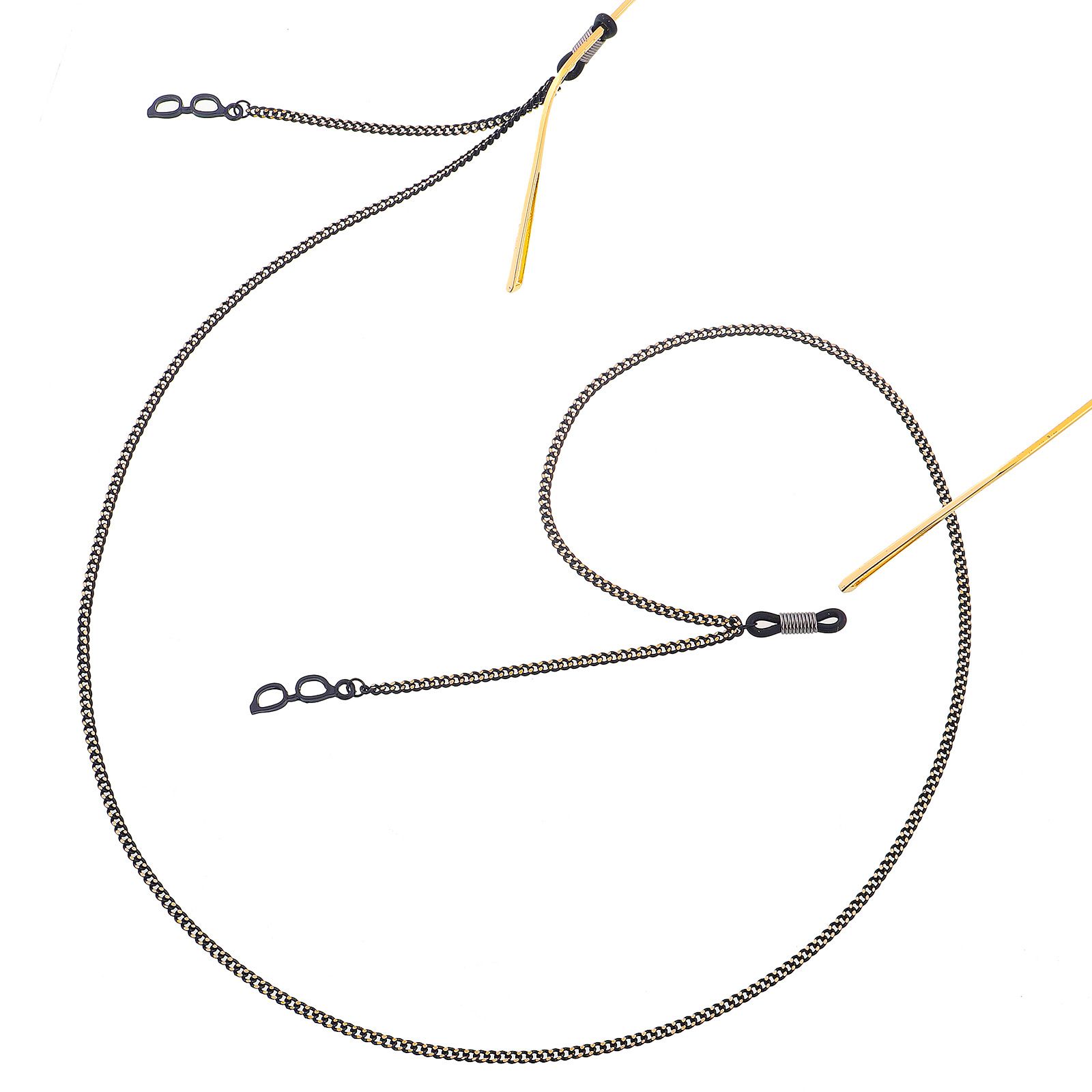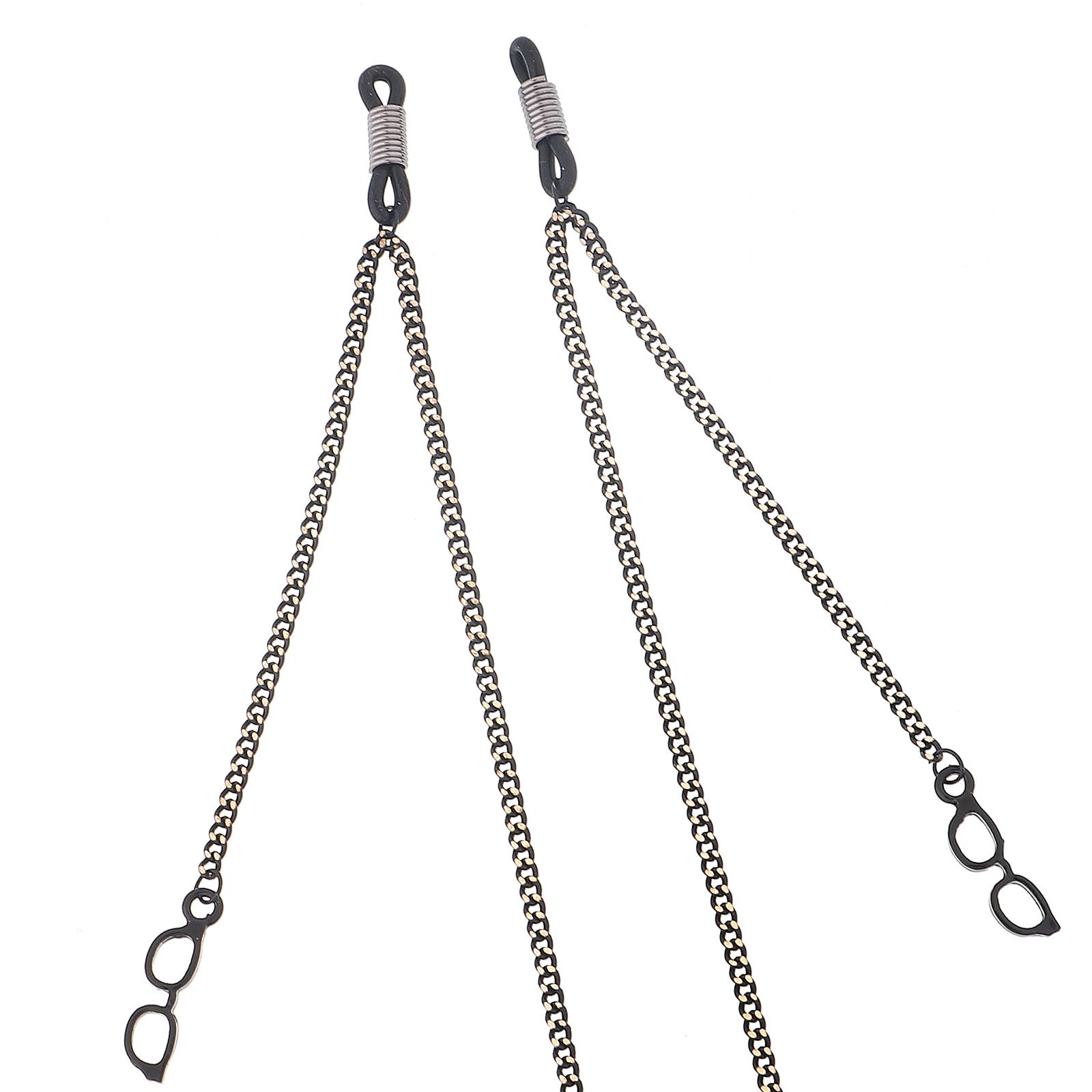 Black-colored metal non-slip chain, with pendant glasses, for glasses and masks GL413