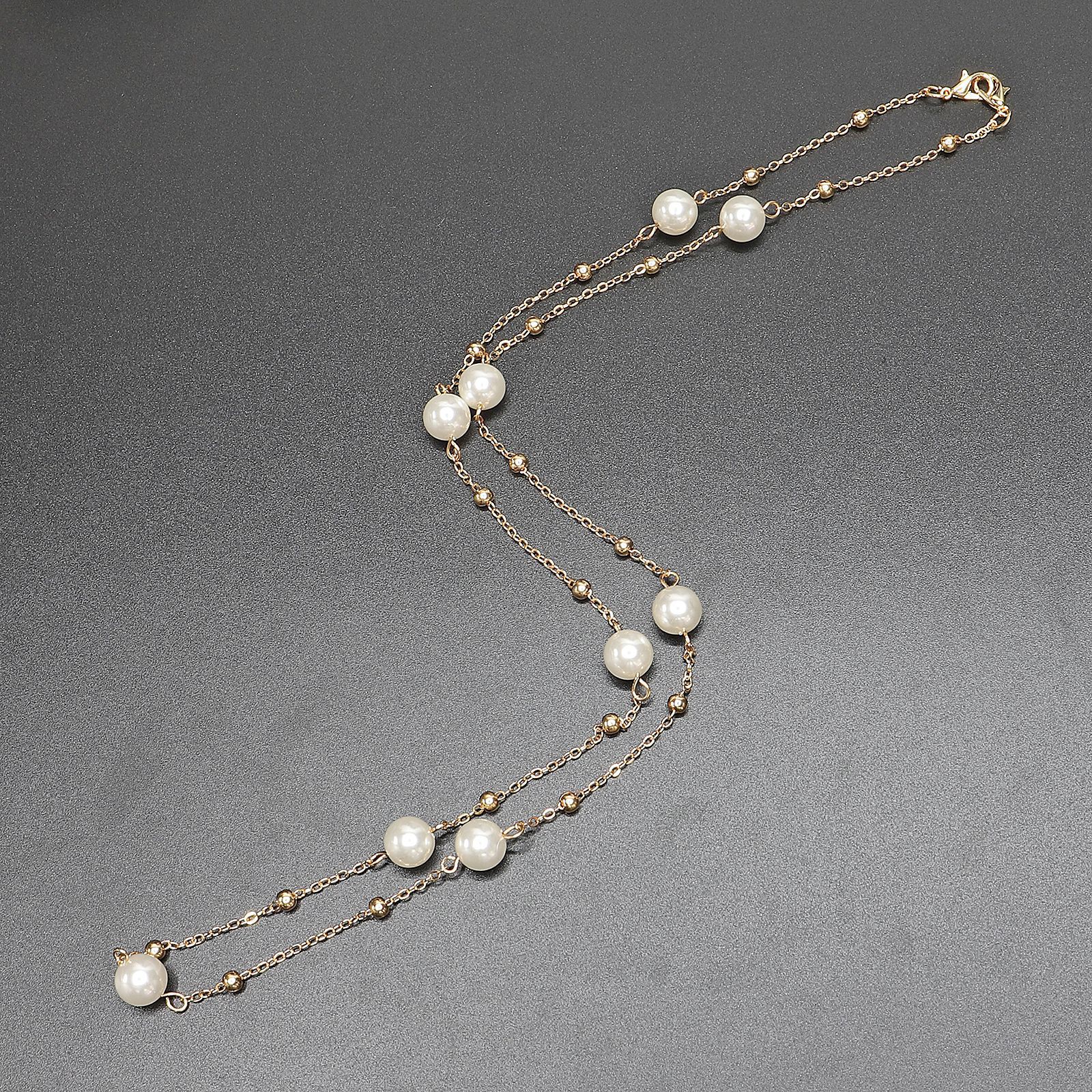 Gold-colored metal non-slip chain, with pearl and beads, for glasses and sweater GL417