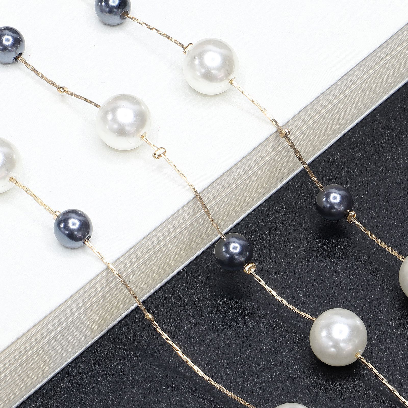 Metal non-slip chain, with gray and white pearl, for glasses and masks GL432