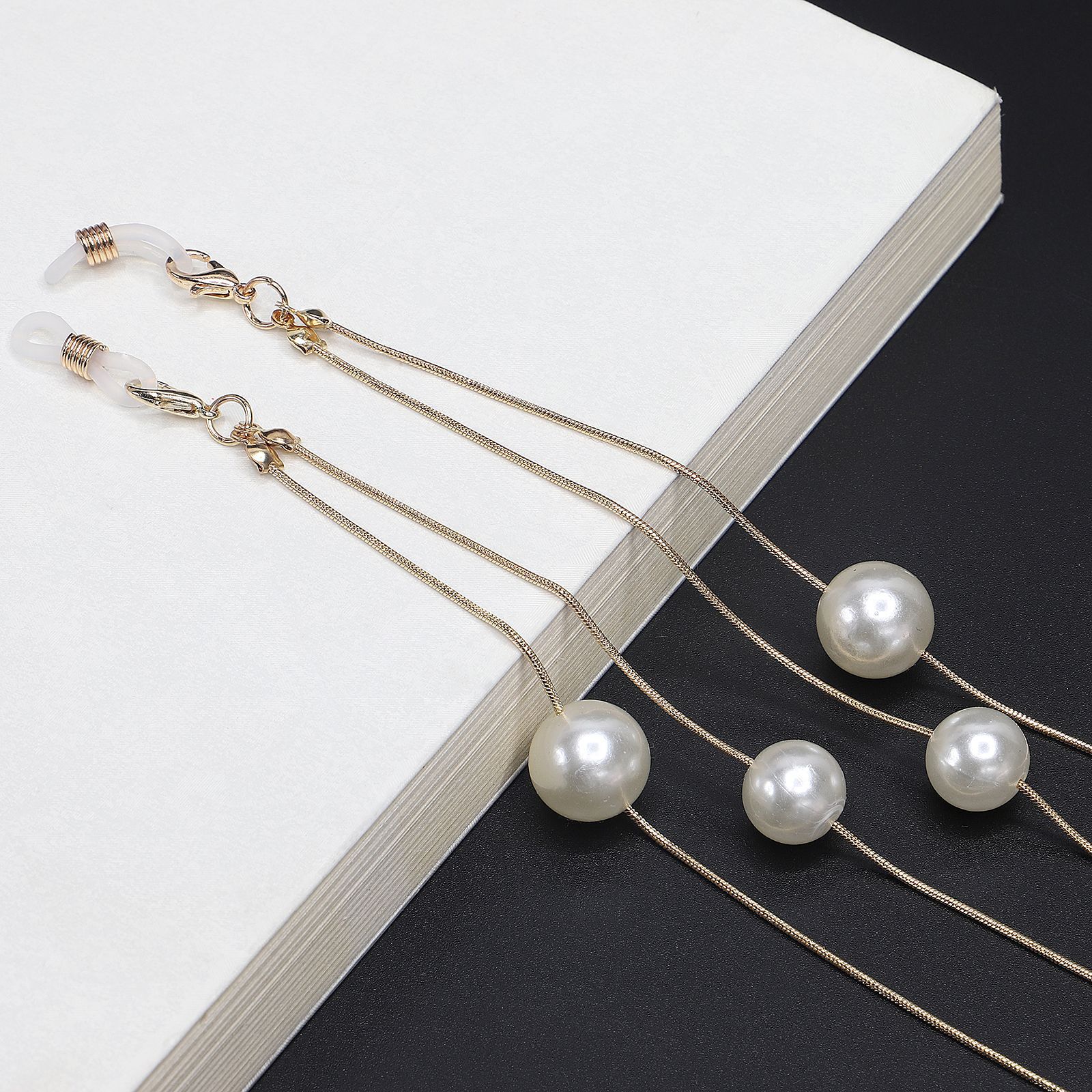 Metal non-slip chain, with black and white pearl, for glasses and masks GL441