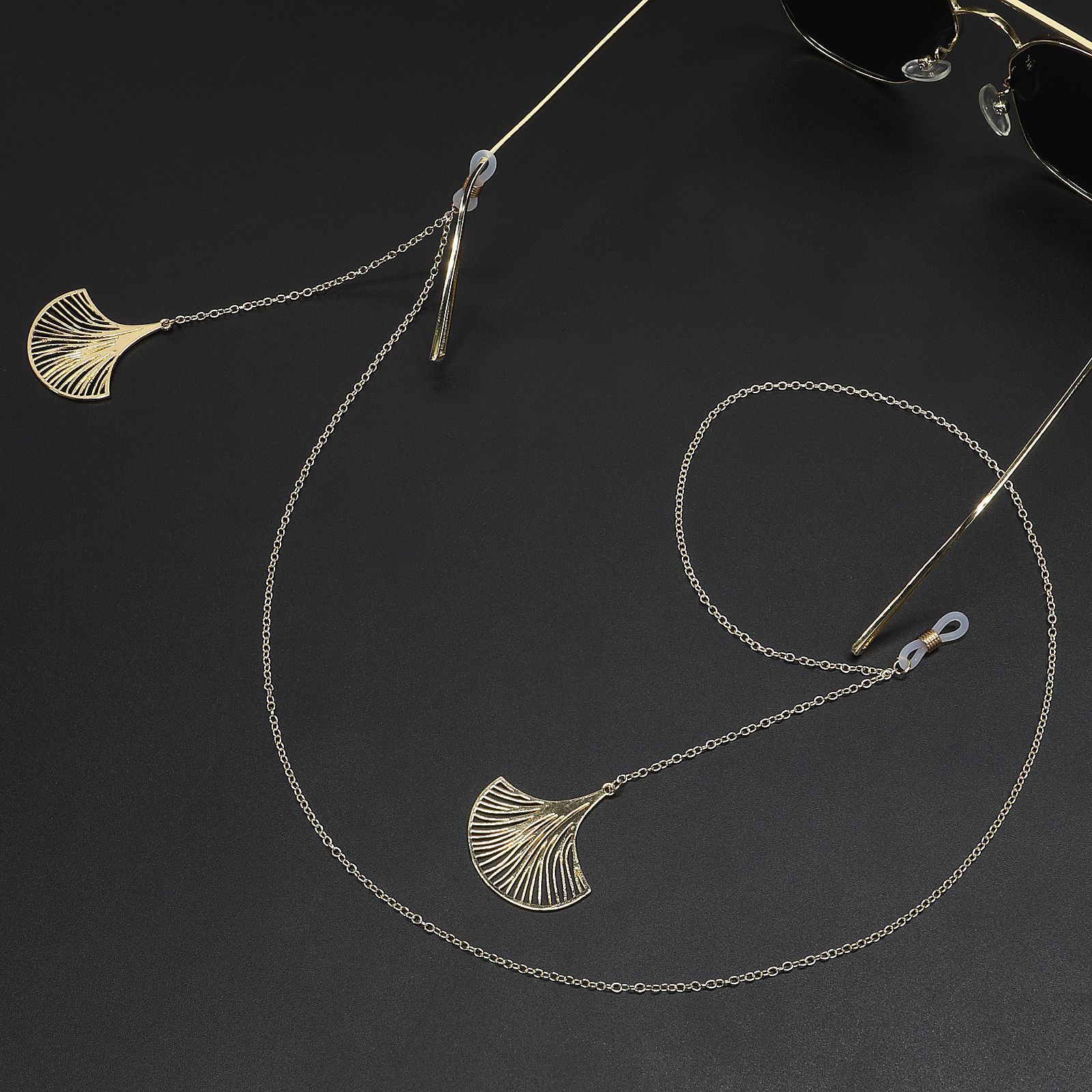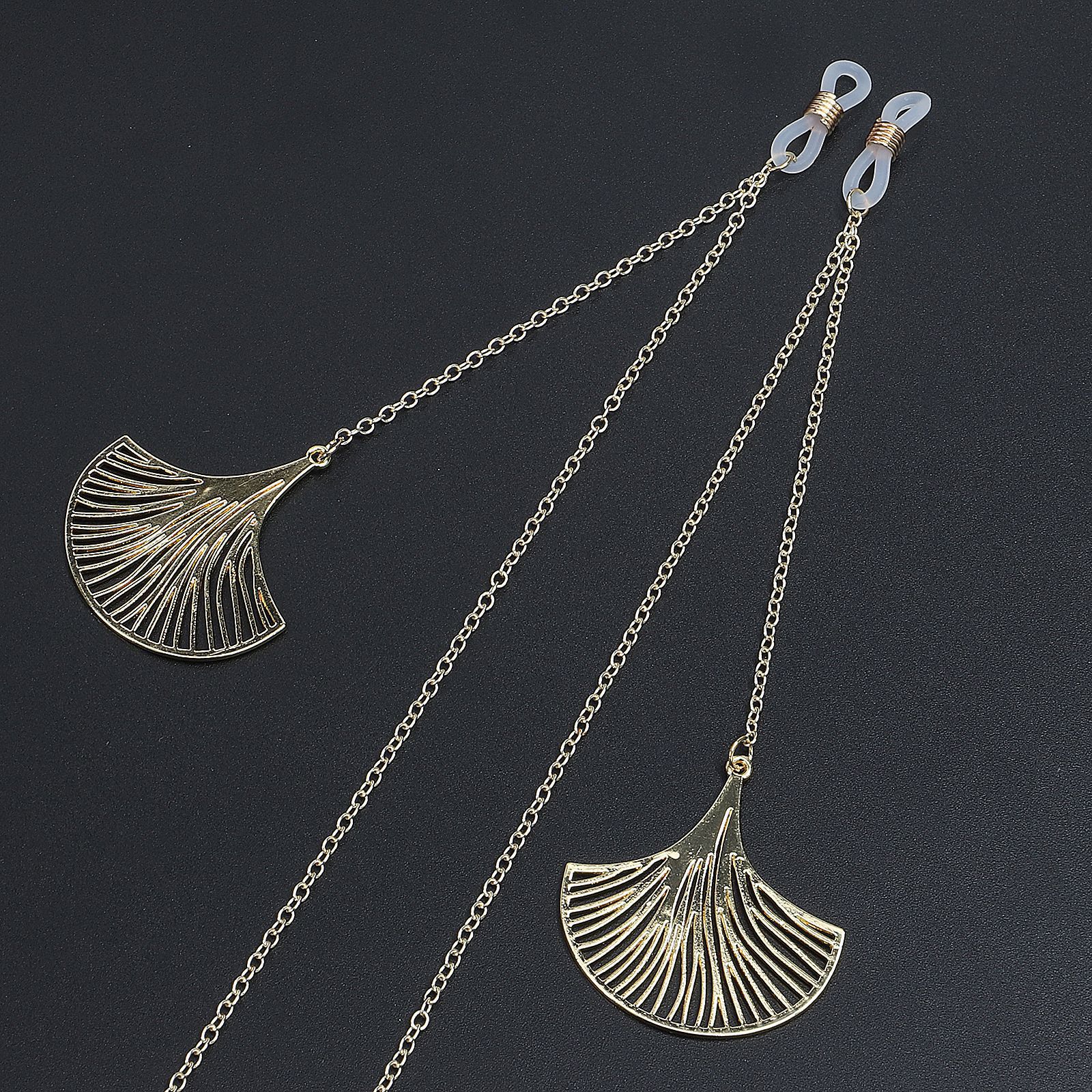 Gold-colored metal non-slip chain, with pendant leaf, for glasses and masks GL448