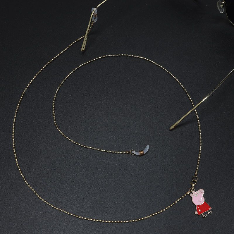Gold-colored metal non-slip chain, with piglet, for glasses and masks GL478