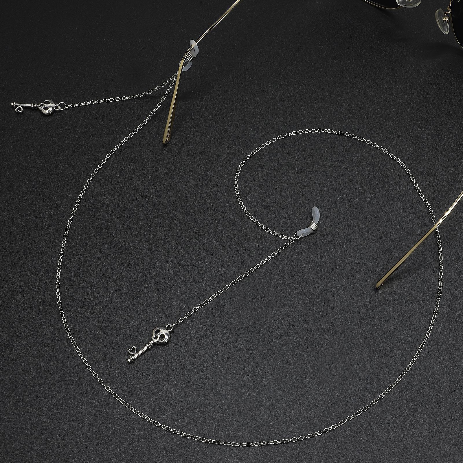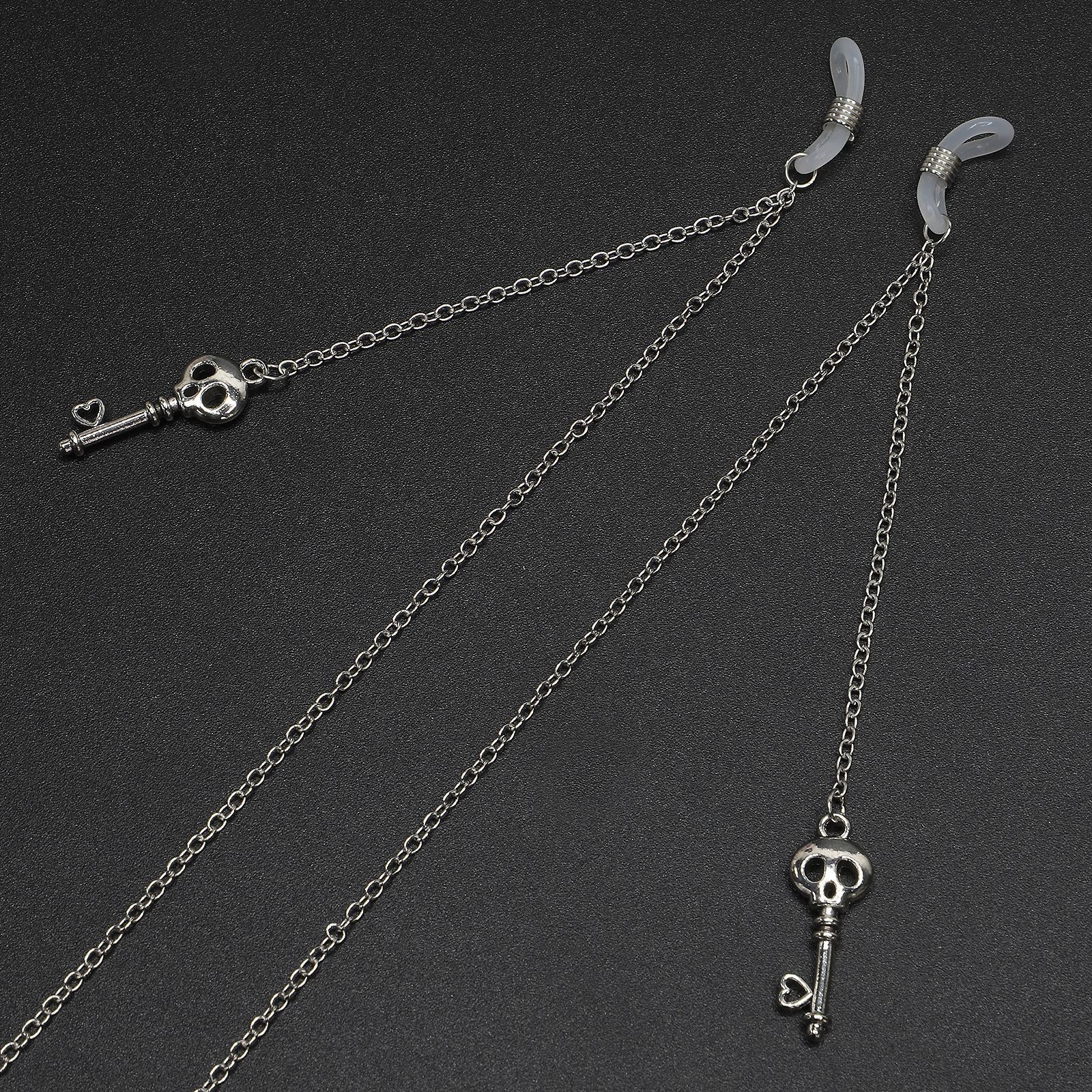 Silver-colored metal non-slip chain, with pendant skull key, for glasses and masks GL484