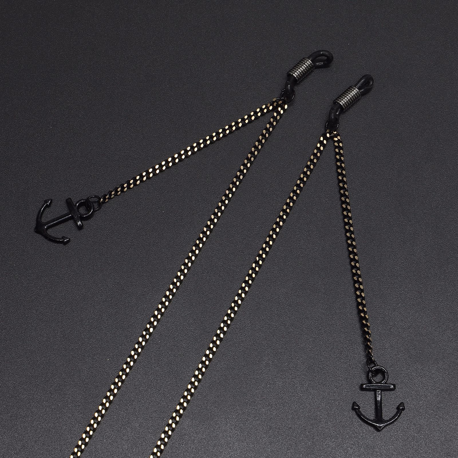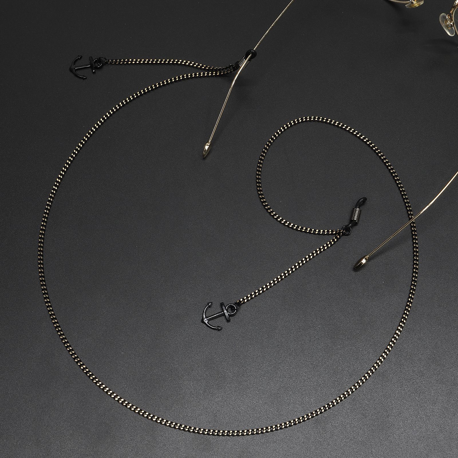 Black-colored metal non-slip chain, with pendant anchor, for glasses and masks GL494