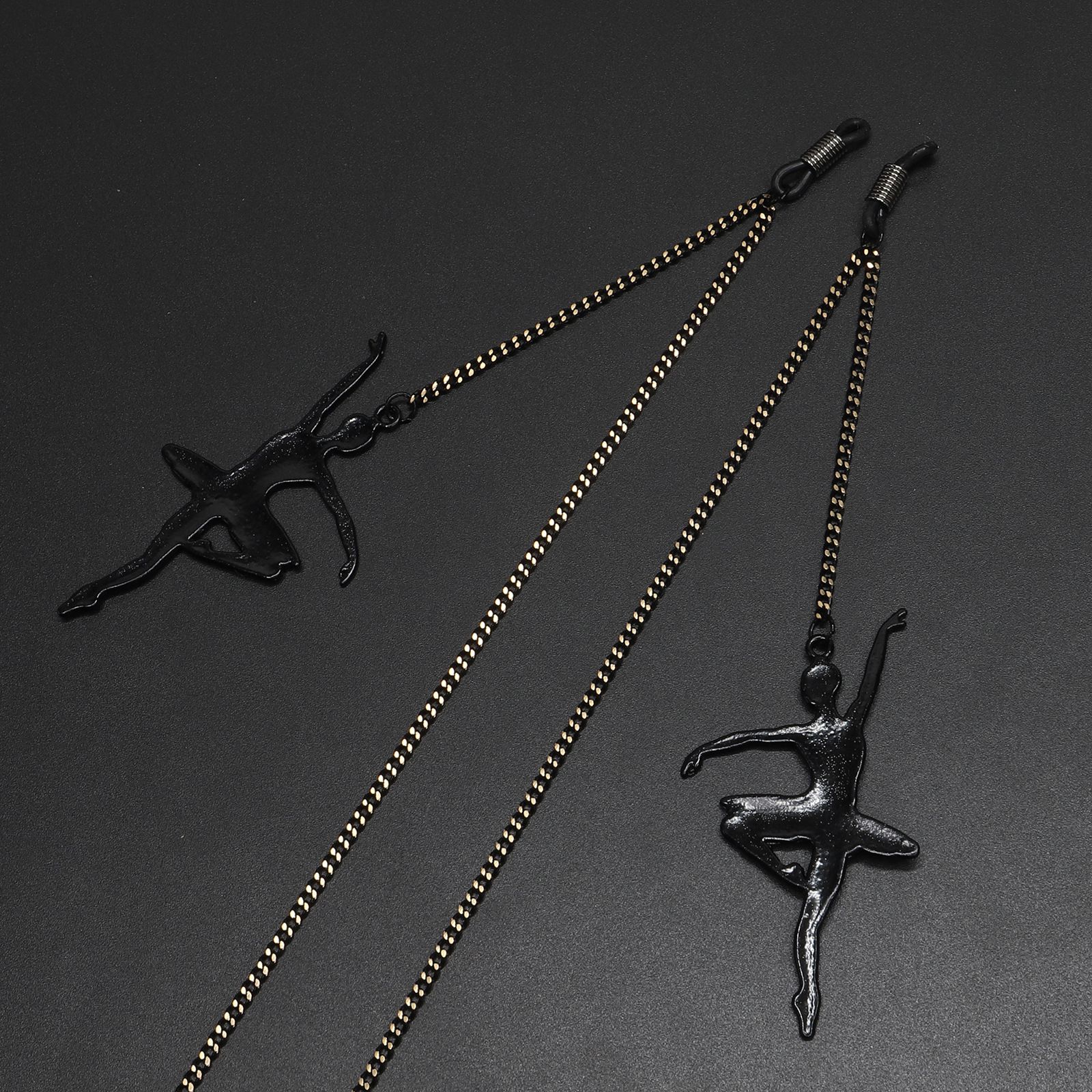 Black-colored metal non-slip chain, with pedant ballet dancer, for glasses and masks GL495
