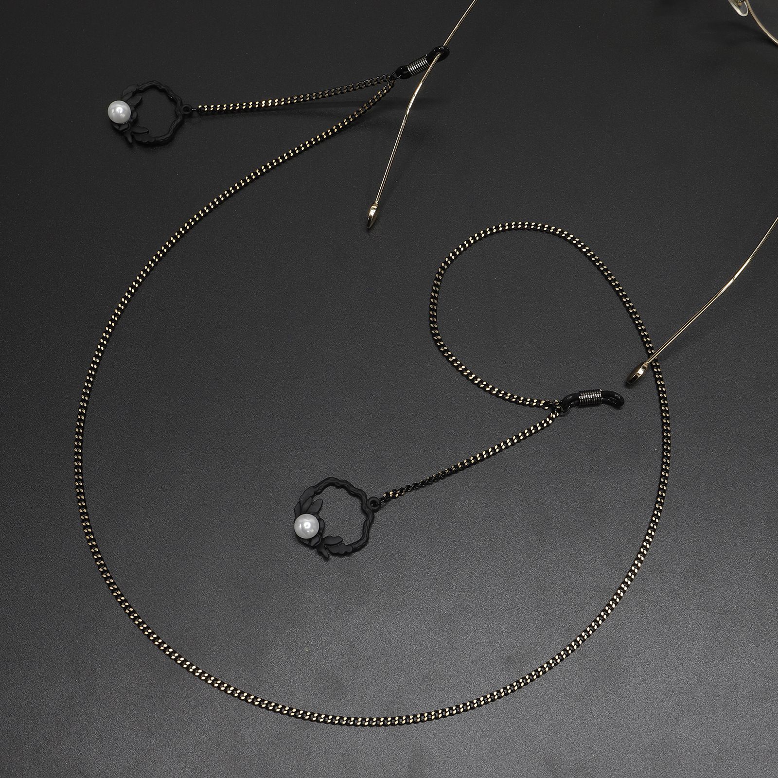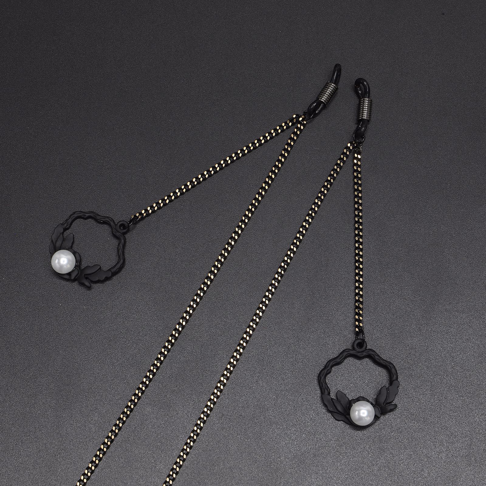 Metal non-slip chain, with pearl and black flower basket, for glasses and masks GL497