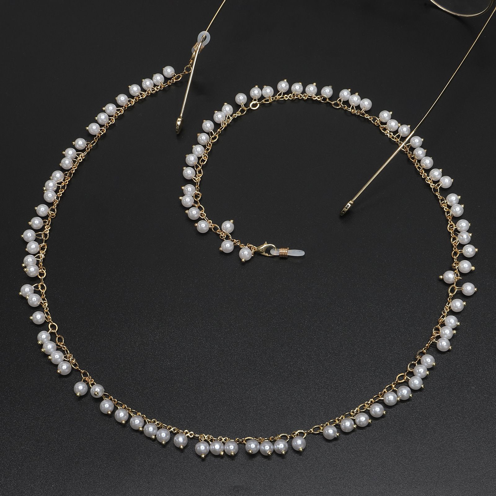 Metal non-slip chain, with large pearl, for glasses and masks GL504