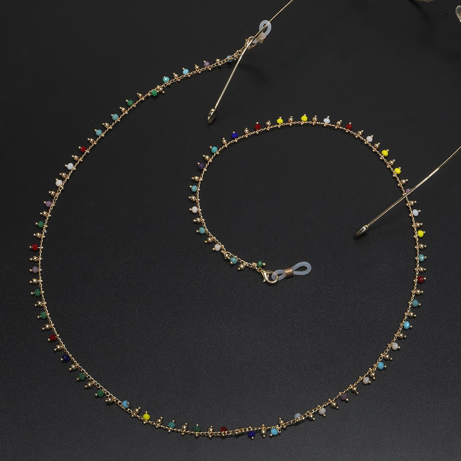 Metal non-slip chain, with colorful glass beads, for glasses and masks GL512