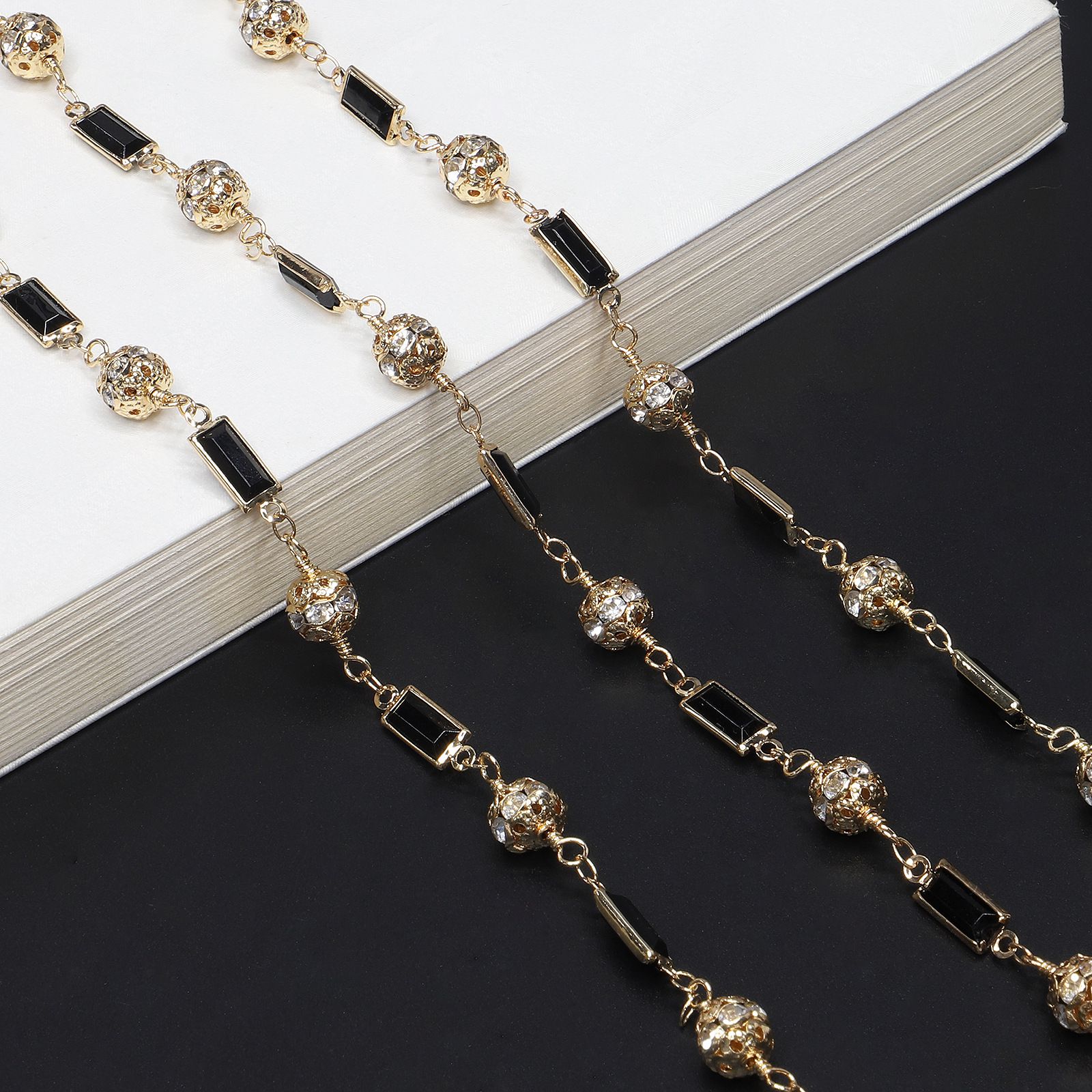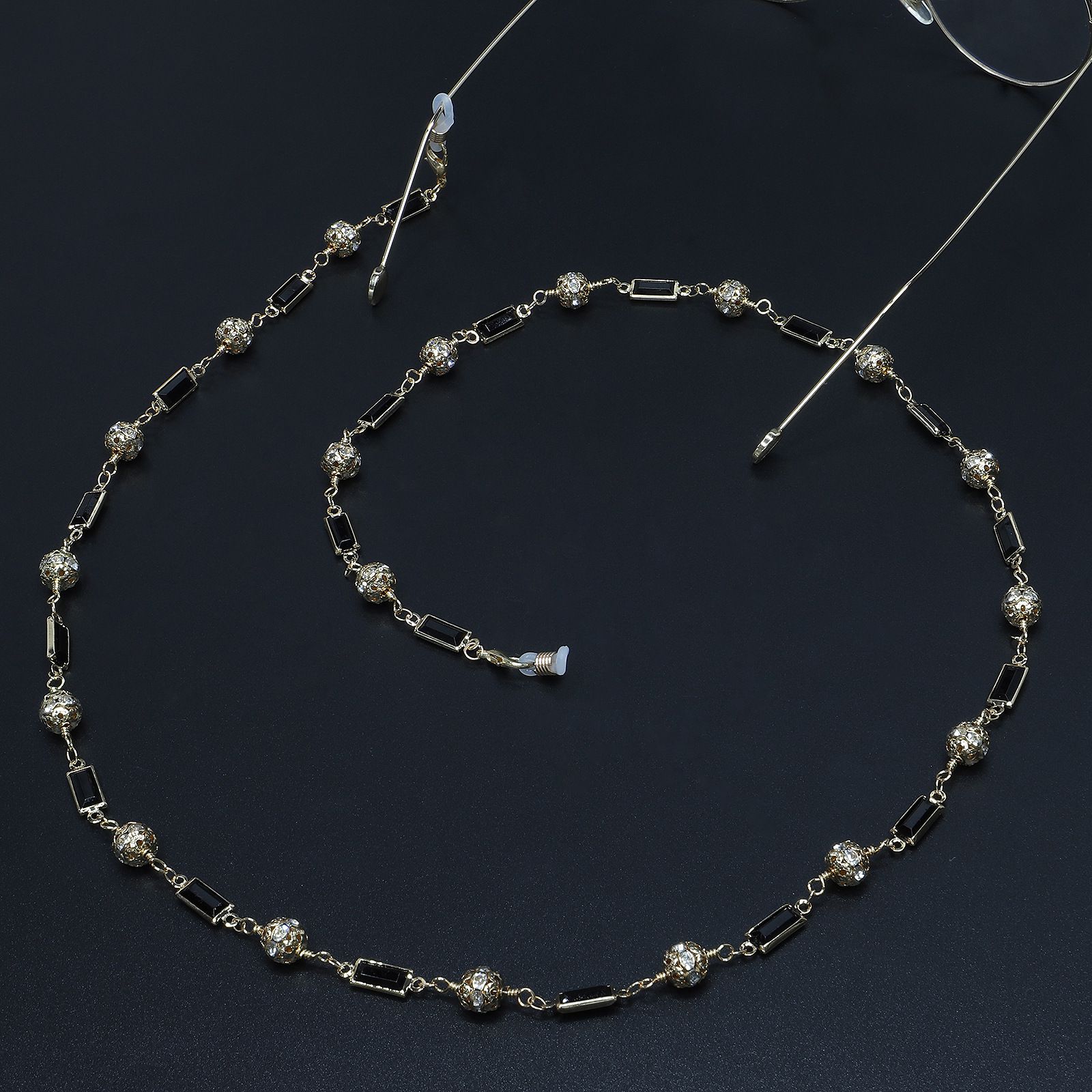 Metal non-slip chain, with cubes, stone and diamond balls, for glasses and masks GL522