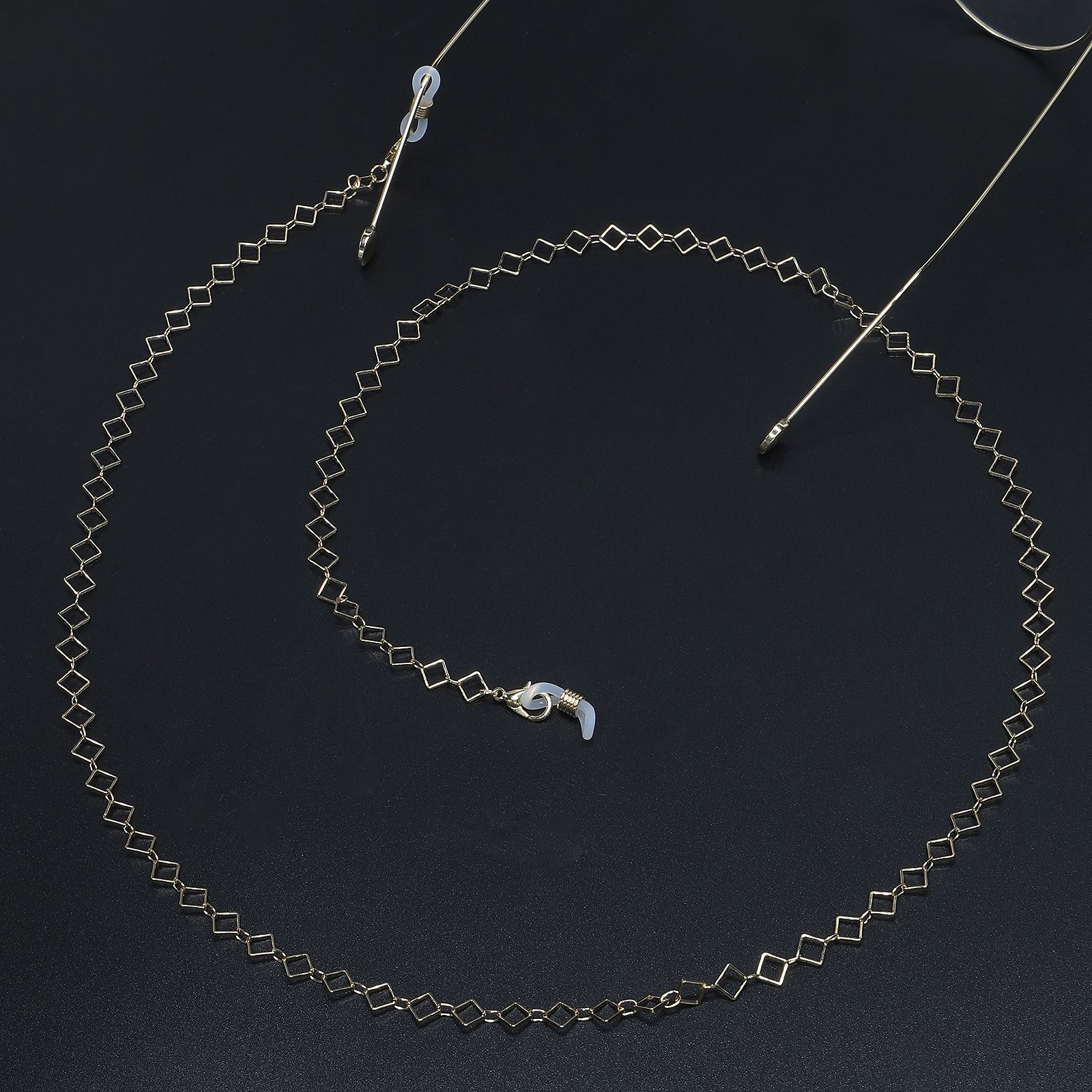 Gold-colored metal non-slip chain, with square, for glasses and masks GL524