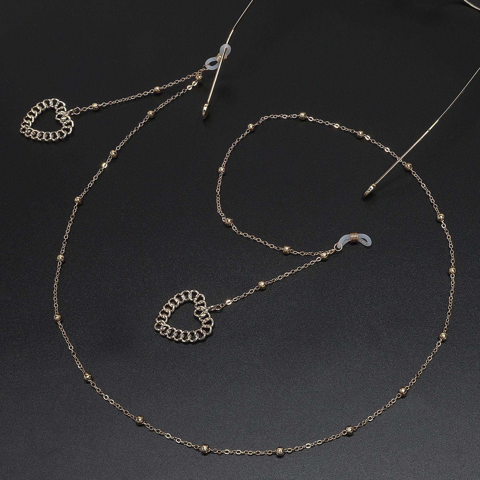 Gold-colored metal non-slip chain, with pendant heart and beads, for glasses and masks GL536