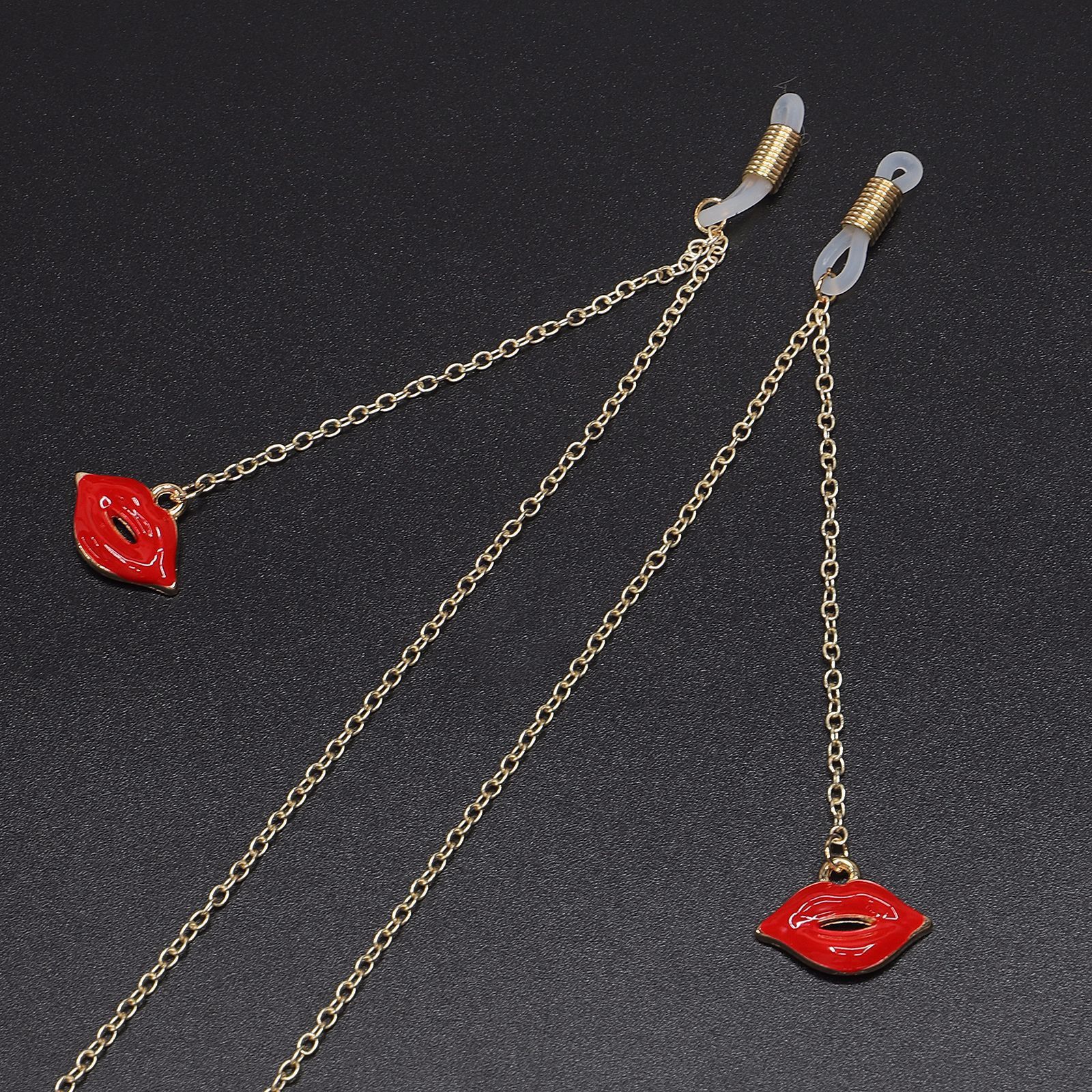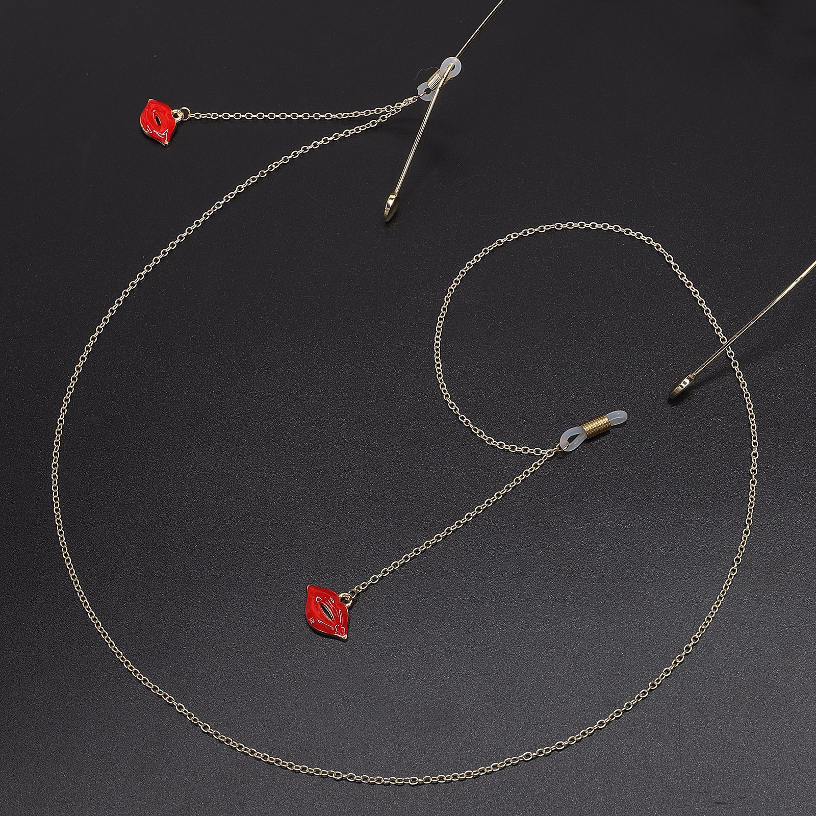 Gold-colored metal non-slip chain, with pendant red lips, for glasses and masks GL541